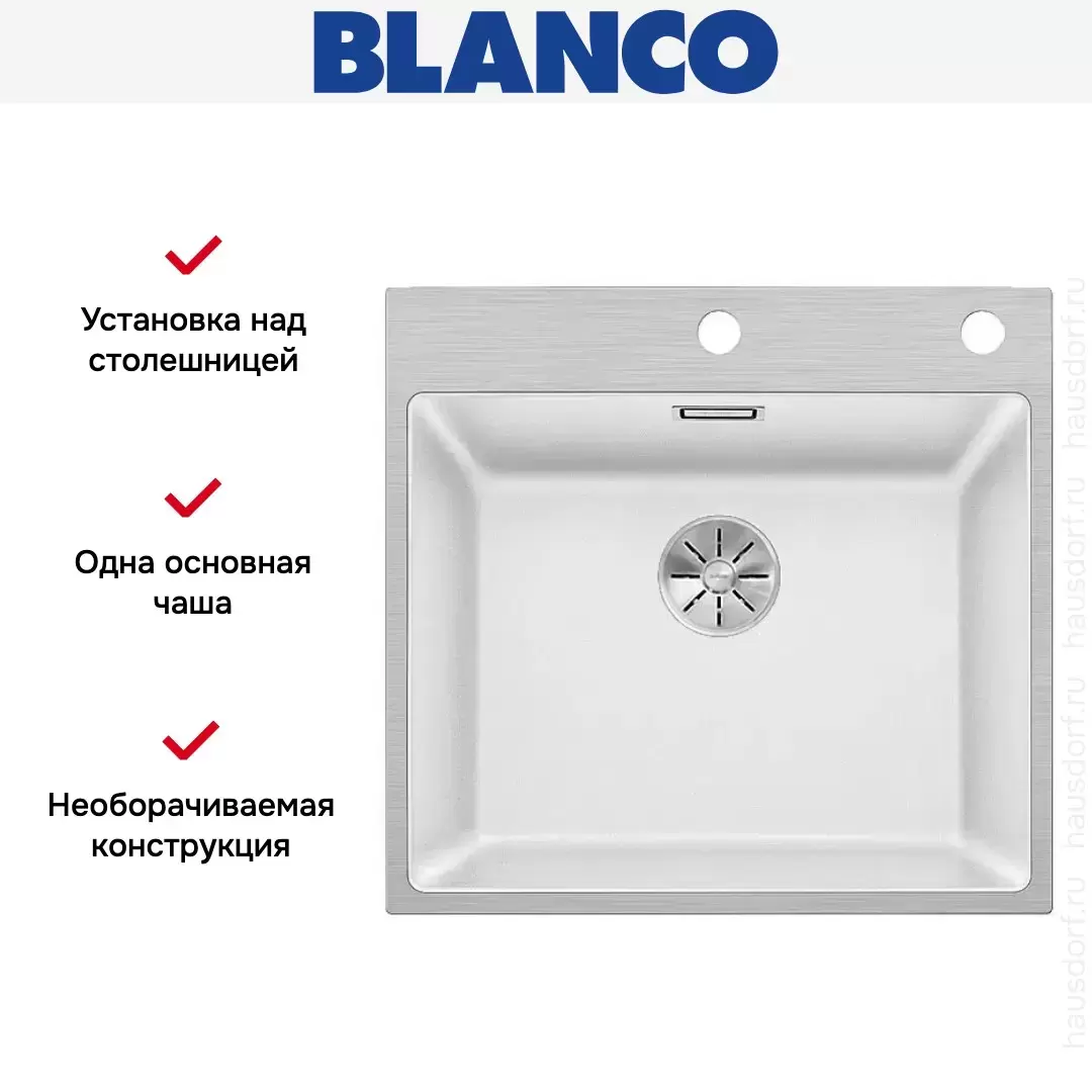 Мойка Blanco SUBLINE 500-IF/A клапан-автомат InFino® белый