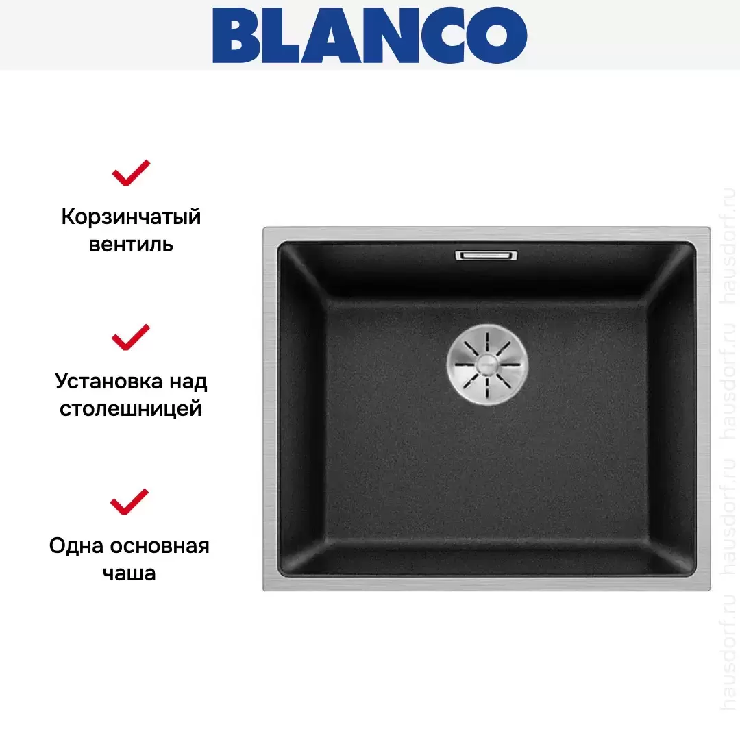 Мойка Blanco SUBLINE 500-IF отводная арматура InFino® антрацит