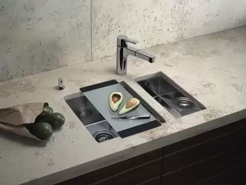 Врезная мойка Blanco — отличный выбор для тех, кто хочет создать гармоничное кухонное пространство с полностью вписывающейся в него сантехникой. Преимущество такой конструкции — плотное прилегание к столешнице, так как вырез подбирается индивидуально под габариты модели. Под стыки не попадает вода, поэтому срок службы значительно увеличивается, пользоваться ей удобно и приятно. Устанавливается вровень со столешницей, благодаря чему не остается стыков, в которых копились бы загрязнения.