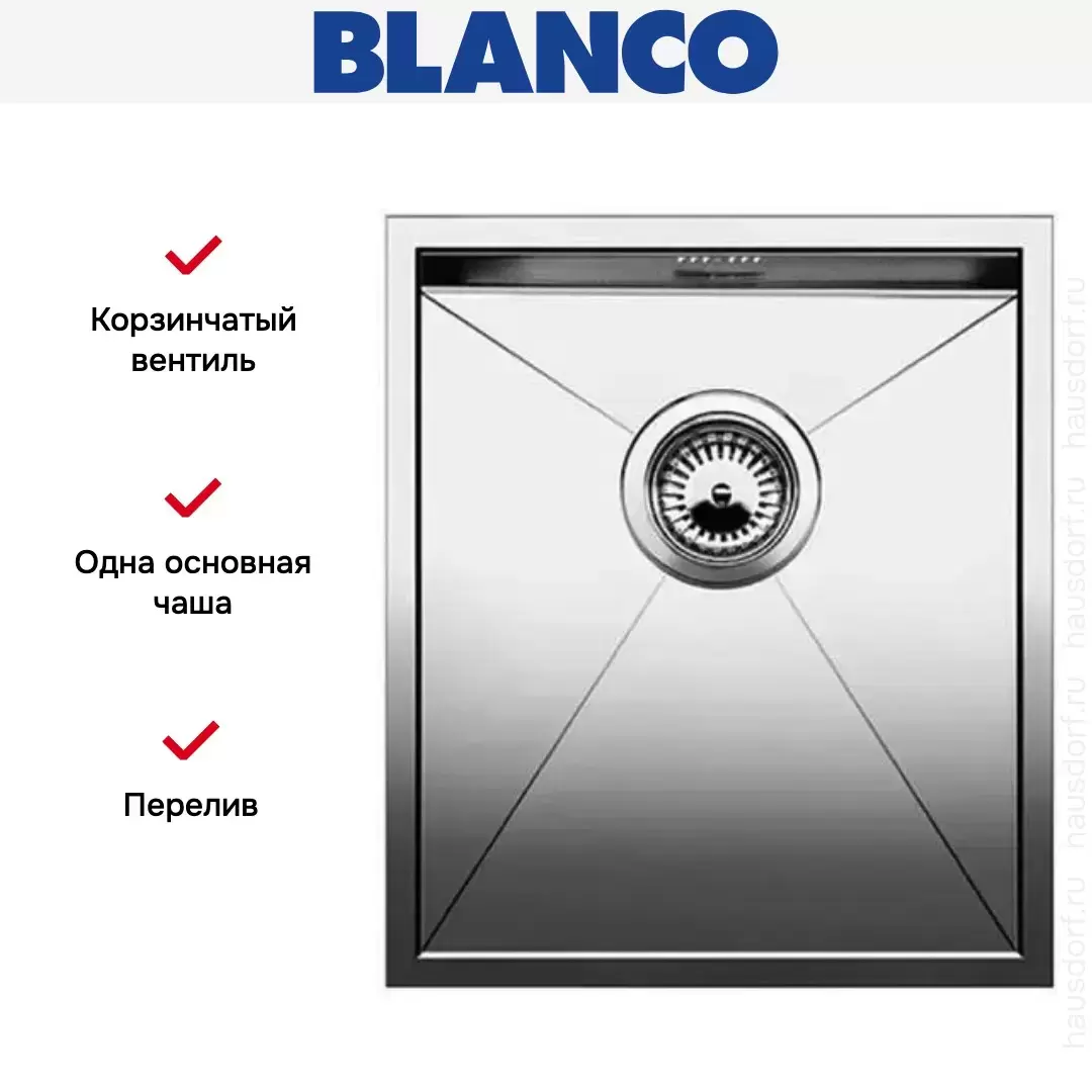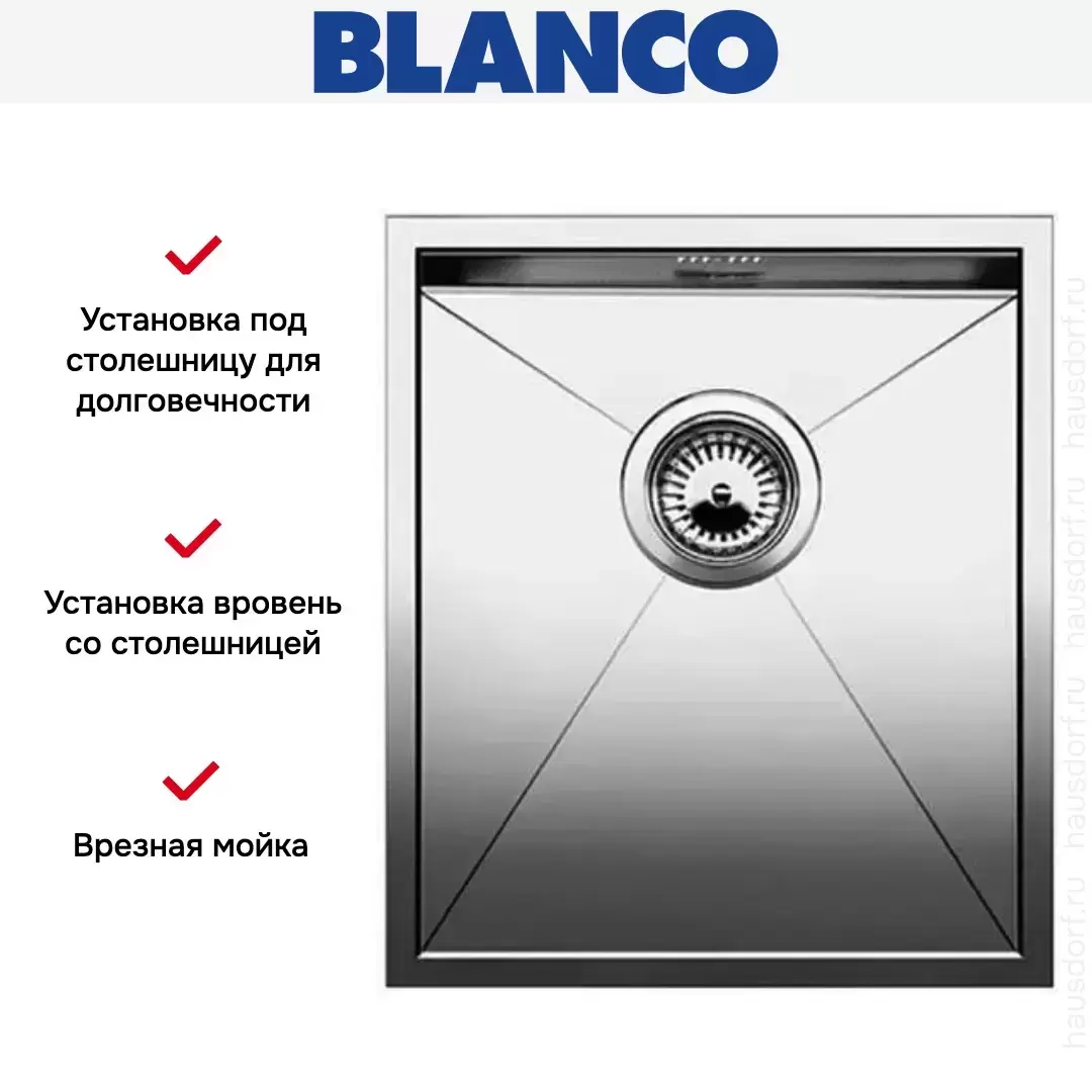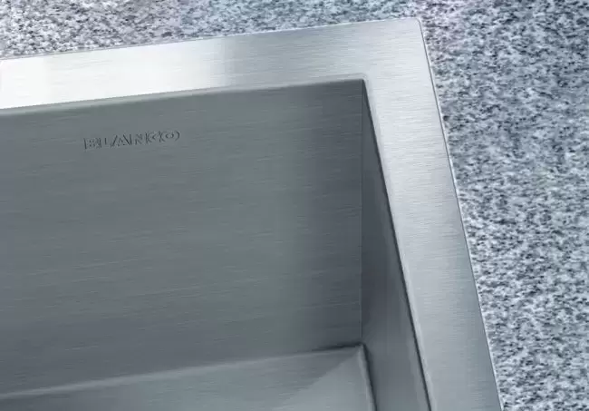 Обратите внимание на дизайнерские отличия мойки Бланко, которые помогут в создании идеальной кухни в вашем доме. Она выполнена в цвете нержавеющая сталь. Основной материал — нержавеющая сталь, он гарантирует надежность и долгие годы службы без повреждений. У этого покрытия приятная полированная текстура.
