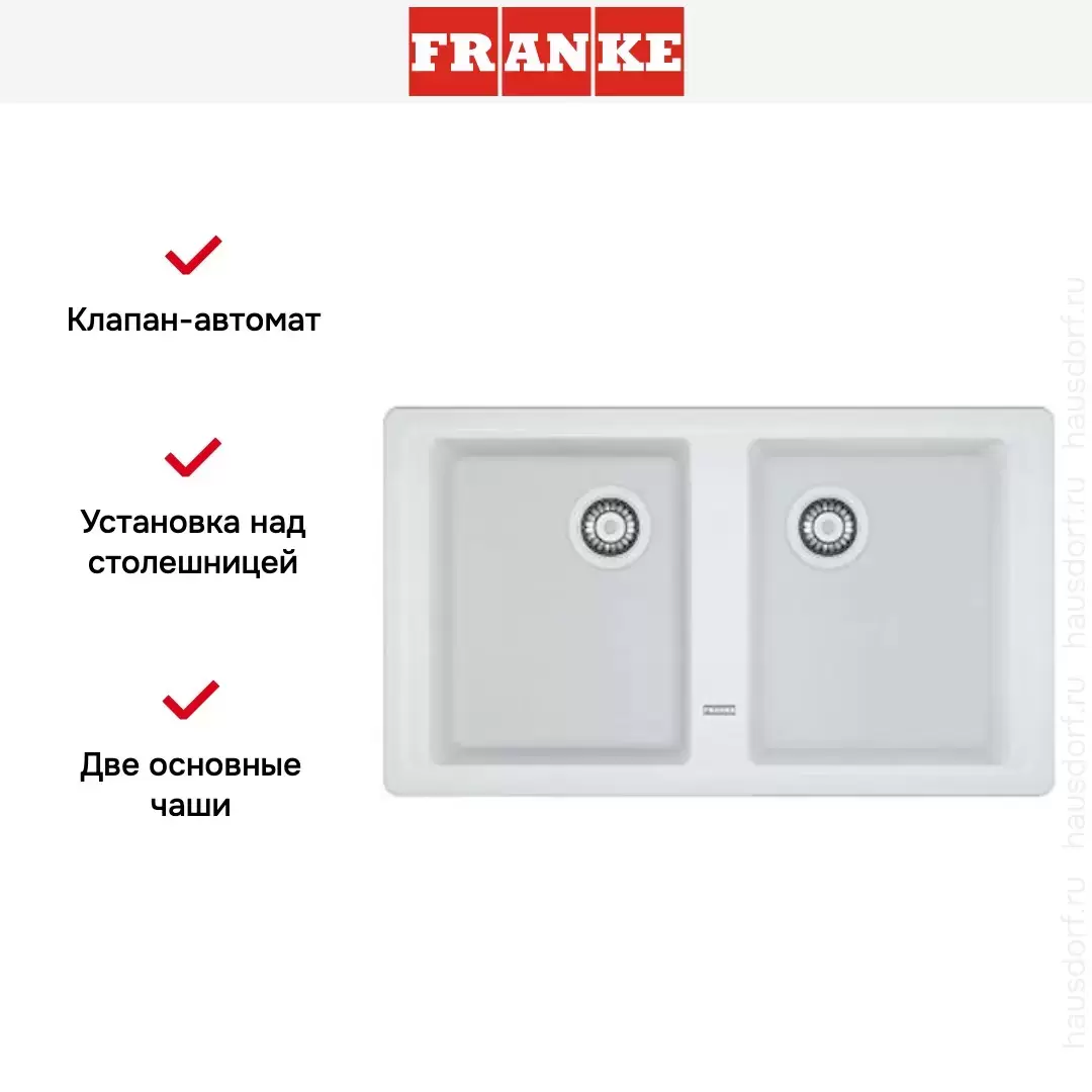 Обратите внимание на дизайнерские отличия мойки Франке, которые помогут в создании идеальной кухни в вашем доме. Она выполнена в цвете белый. Основной материал — фрагранит, он гарантирует надежность и долгие годы службы без повреждений.