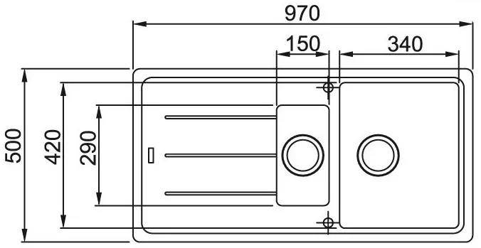 | Габариты мойки, ШxГ (см) | 97 х 50 | |