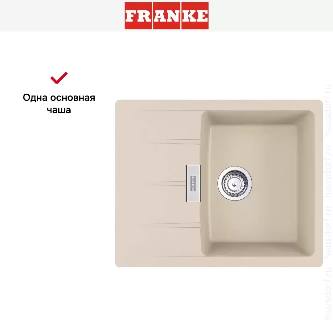 Обратите внимание на дизайнерские отличия мойки Франке, которые помогут в создании идеальной кухни в вашем доме. Она выполнена в цвете бежевый. Основной материал — фрагранит, он гарантирует надежность и долгие годы службы без повреждений. Крыло, расположенное слева или справа, является дополнительным рабочим пространством, на котором можно сушить посуду, разделывать мясо и нарезать овощи.
