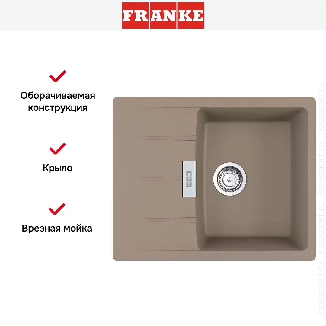 Накладная мойка Franke — отличный выбор для тех, кто хочет создать гармоничное пространство с удобной сантехникой. простой в установке. Преимущество такой конструкции: легко подобрать практически к любой кухне и не придется демонтировать вместе с тумбой при ремонте или перестановке остальной мебели. Данная модель имеет стандартную форму, поэтому подходит большинству пользователей. Устанавливается над столешницей: это самый простой способ монтажа, зачастую с ним можно справиться даже без специалистов, главное — правильно рассчитать размеры ниши.