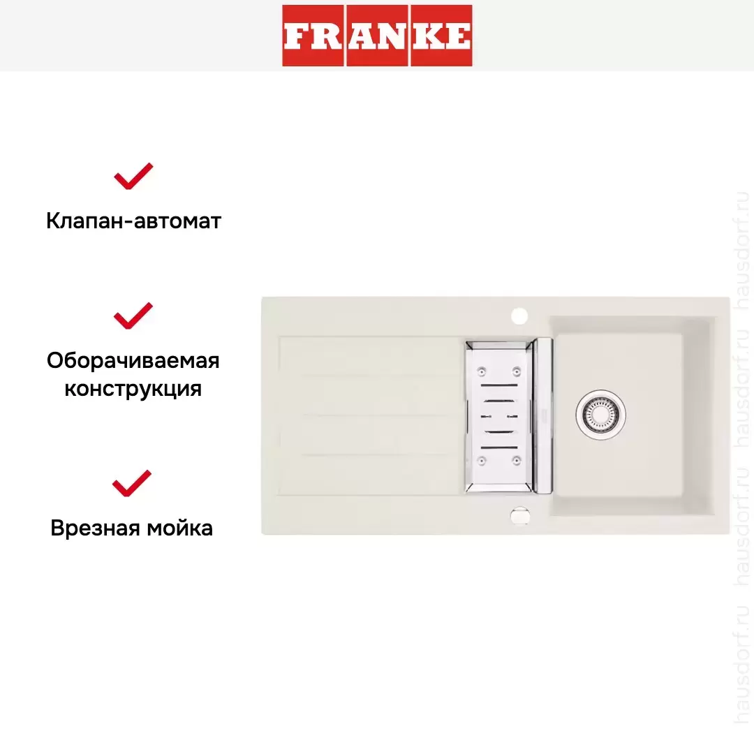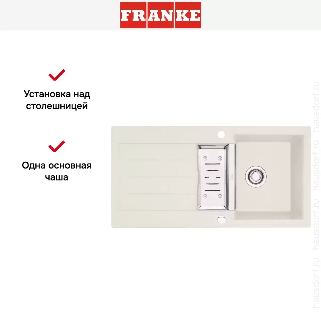 Накладная мойка Franke — отличный выбор для тех, кто хочет создать гармоничное пространство с удобной сантехникой. простой в установке. Преимущество такой конструкции: легко подобрать практически к любой кухне и не придется демонтировать вместе с тумбой при ремонте или перестановке остальной мебели. Данная модель имеет стандартную форму, поэтому подходит большинству пользователей. Устанавливается над столешницей: это самый простой способ монтажа, зачастую с ним можно справиться даже без специалистов, главное — правильно рассчитать размеры ниши.