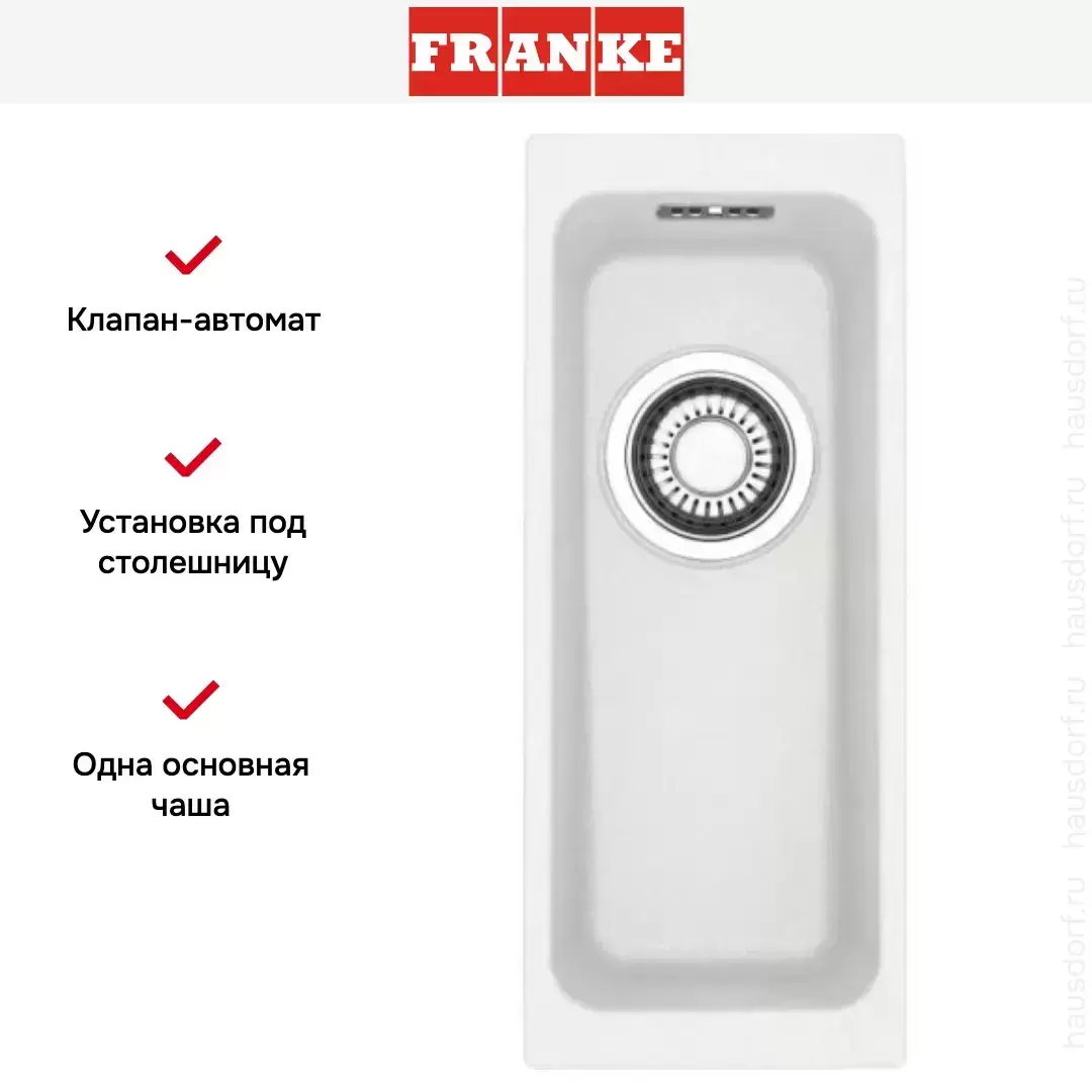 Обратите внимание на дизайнерские отличия мойки Франке, которые помогут в создании идеальной кухни в вашем доме. Она выполнена в цвете белый. Основной материал — фрагранит, он гарантирует надежность и долгие годы службы без повреждений.