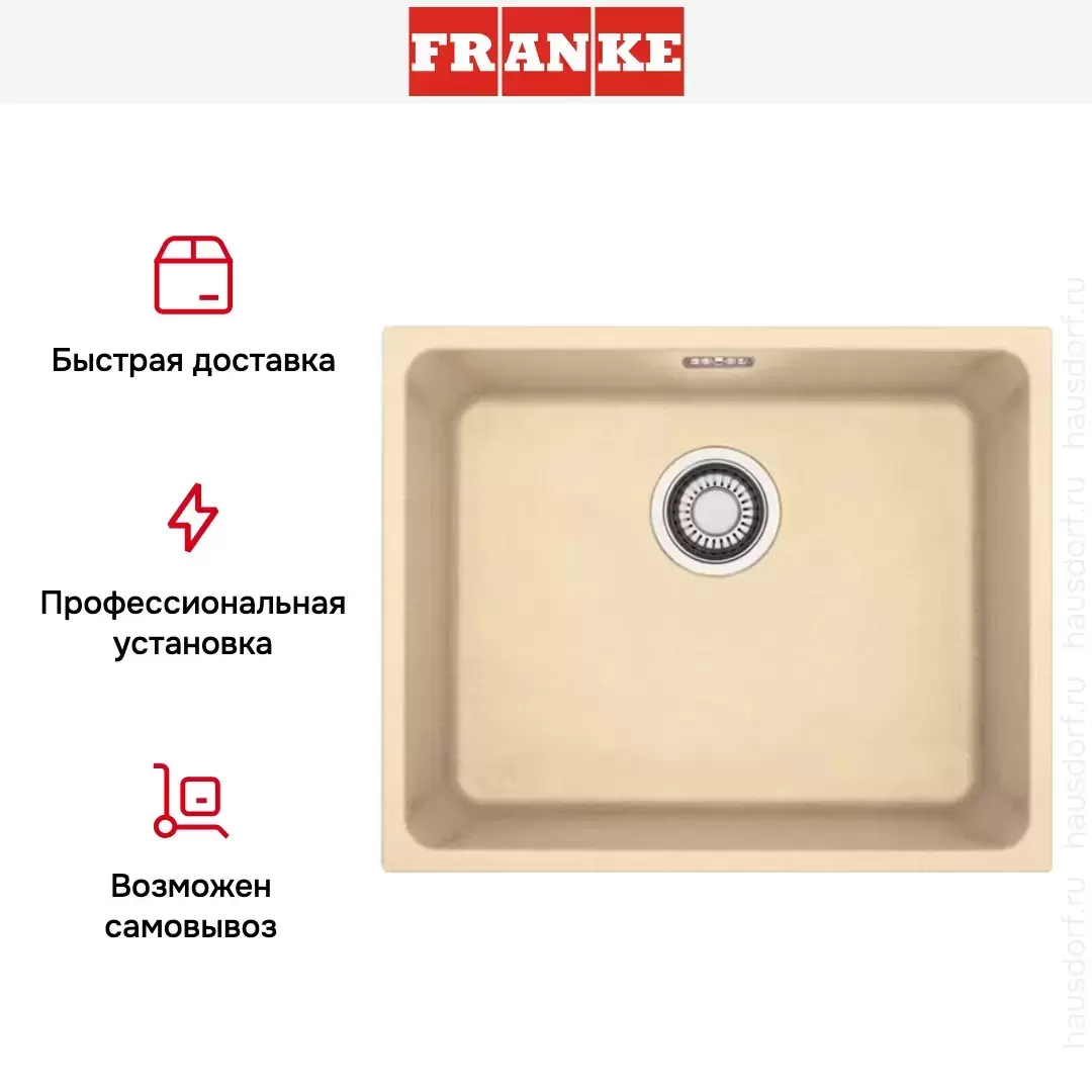 Обратите внимание на дизайнерские отличия мойки Франке, которые помогут в создании идеальной кухни в вашем доме. Она выполнена в цвете бежевый. Основной материал — фрагранит, он гарантирует надежность и долгие годы службы без повреждений.