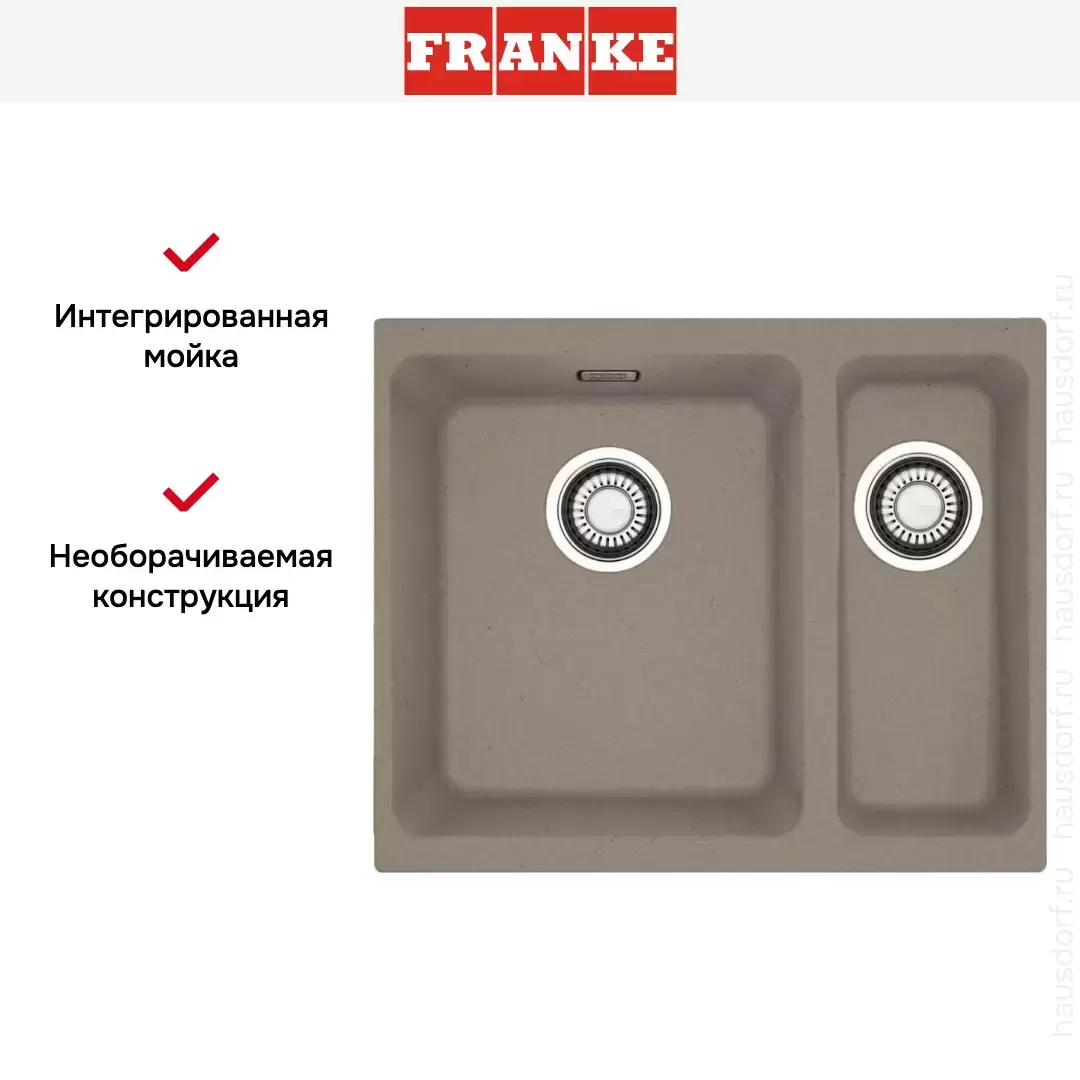 Врезная мойка Franke — отличный выбор для тех, кто хочет создать гармоничное кухонное пространство с полностью вписывающейся в него сантехникой. Преимущество такой конструкции — плотное прилегание к столешнице, так как вырез подбирается индивидуально под габариты модели. Под стыки не попадает вода, поэтому срок службы значительно увеличивается, пользоваться ей удобно и приятно. Данная модель имеет стандартную форму, поэтому подходит большинству пользователей. Устанавливается под столешницу, благодаря чему не остается стыков, в которых копились бы загрязнения, а также увеличивается рабочая глубина.