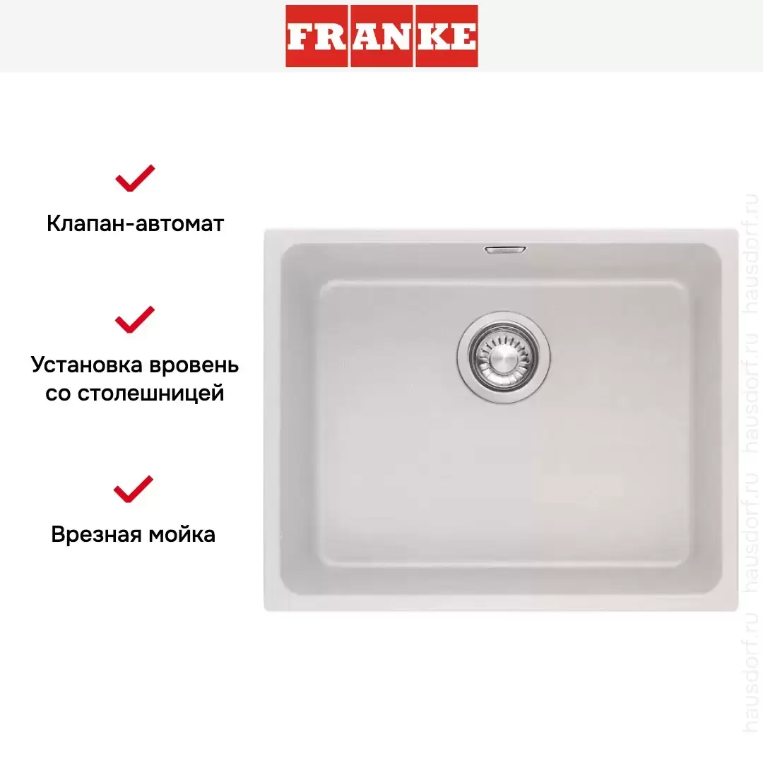 Обратите внимание на дизайнерские отличия мойки Франке, которые помогут в создании идеальной кухни в вашем доме. Она выполнена в цвете белый. Основной материал — гранит, он гарантирует надежность и долгие годы службы без повреждений.