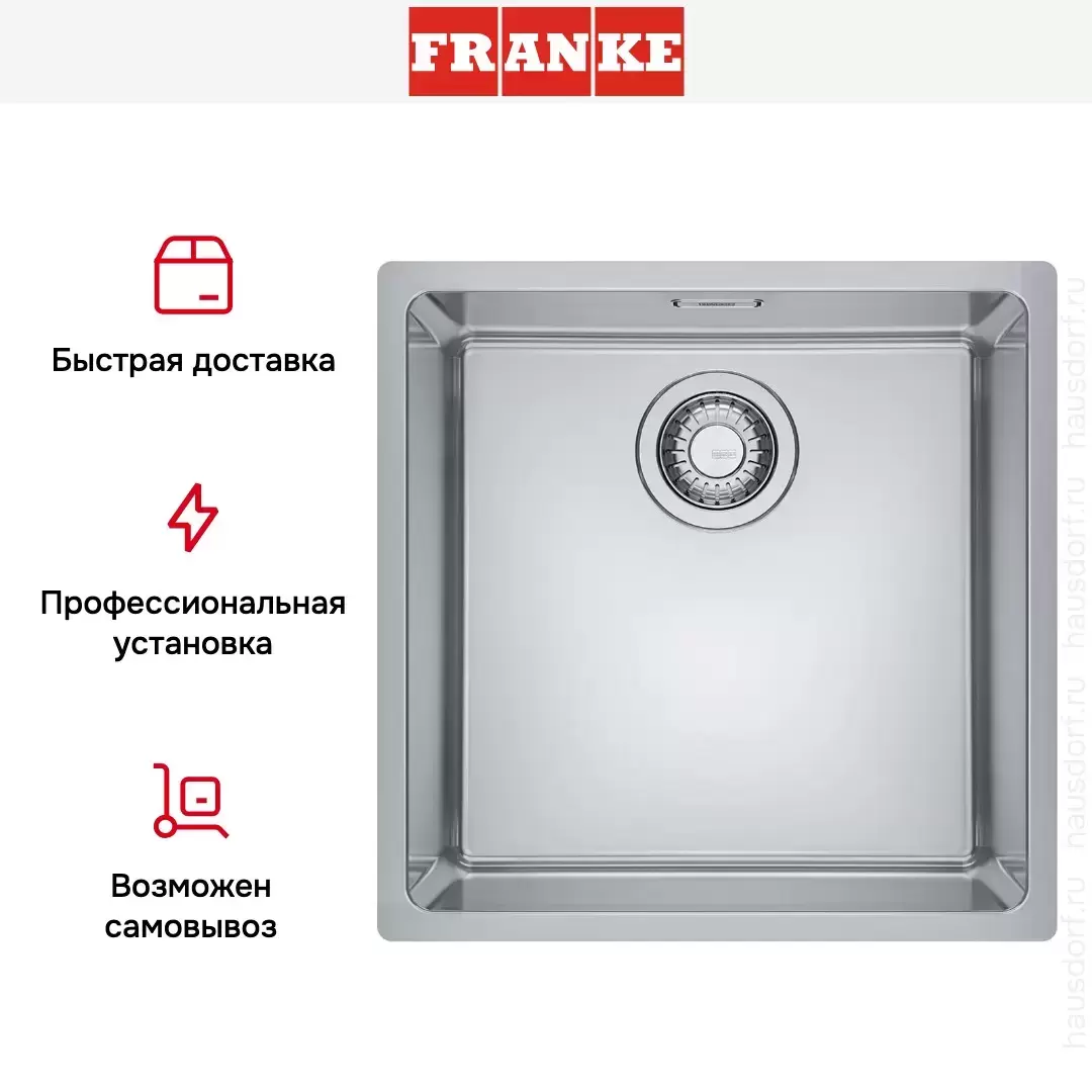 Обратите внимание на дизайнерские отличия мойки Франке, которые помогут в создании идеальной кухни в вашем доме. Она выполнена в цвете нержавеющая сталь. Основной материал — нержавеющая сталь, он гарантирует надежность и долгие годы службы без повреждений.