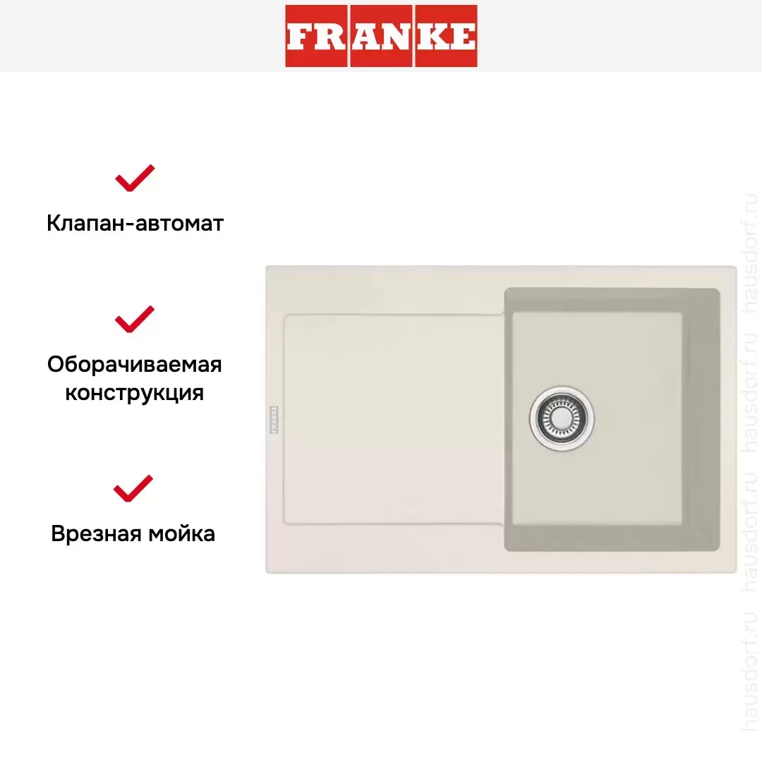 Накладная мойка Franke — отличный выбор для тех, кто хочет создать гармоничное пространство с удобной сантехникой. простой в установке. Преимущество такой конструкции: легко подобрать практически к любой кухне и не придется демонтировать вместе с тумбой при ремонте или перестановке остальной мебели. Данная модель имеет стандартную форму, поэтому подходит большинству пользователей. Устанавливается над столешницей: это самый простой способ монтажа, зачастую с ним можно справиться даже без специалистов, главное — правильно рассчитать размеры ниши.