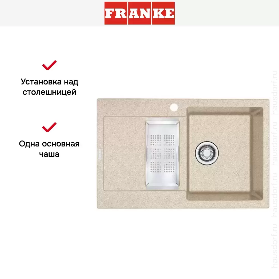Накладная мойка Franke — отличный выбор для тех, кто хочет создать гармоничное пространство с удобной сантехникой. простой в установке. Преимущество такой конструкции: легко подобрать практически к любой кухне и не придется демонтировать вместе с тумбой при ремонте или перестановке остальной мебели. Данная модель имеет стандартную форму, поэтому подходит большинству пользователей. Устанавливается над столешницей: это самый простой способ монтажа, зачастую с ним можно справиться даже без специалистов, главное — правильно рассчитать размеры ниши.