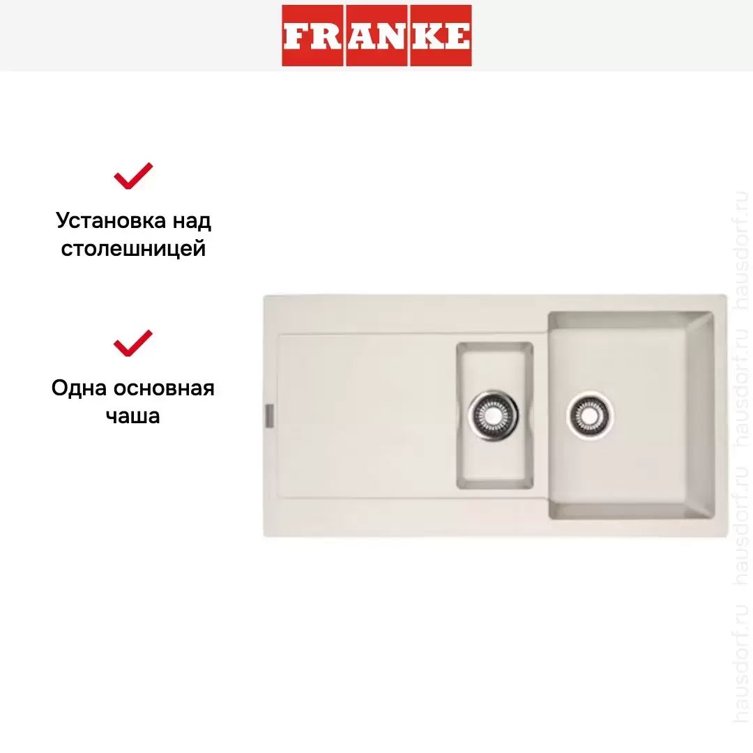 Накладная мойка Franke — отличный выбор для тех, кто хочет создать гармоничное пространство с удобной сантехникой. простой в установке. Преимущество такой конструкции: легко подобрать практически к любой кухне и не придется демонтировать вместе с тумбой при ремонте или перестановке остальной мебели. Данная модель имеет стандартную форму, поэтому подходит большинству пользователей. Устанавливается над столешницей: это самый простой способ монтажа, зачастую с ним можно справиться даже без специалистов, главное — правильно рассчитать размеры ниши.