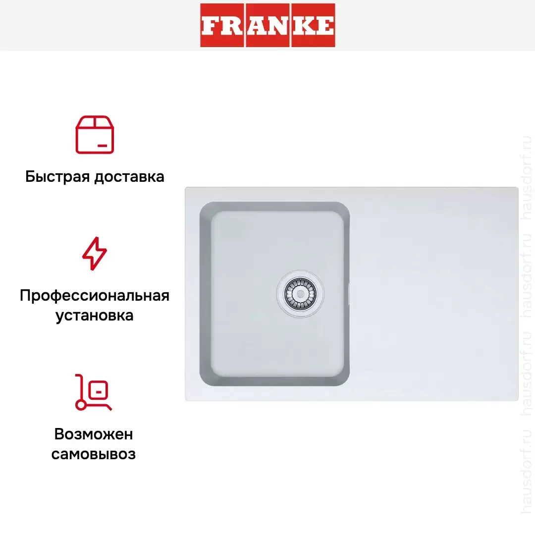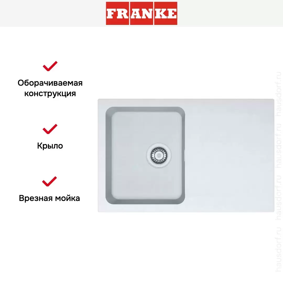 Обратите внимание на дизайнерские отличия мойки Франке, которые помогут в создании идеальной кухни в вашем доме. Она выполнена в цвете белый. Крыло, расположенное слева или справа, является дополнительным рабочим пространством, на котором можно сушить посуду, разделывать мясо и нарезать овощи.