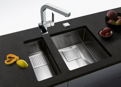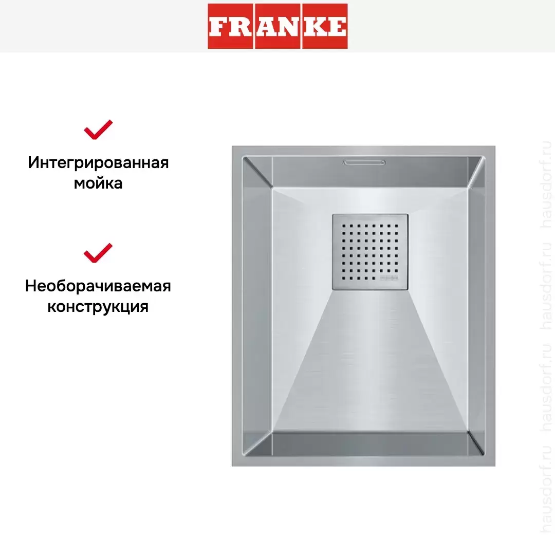 Врезная мойка Franke — отличный выбор для тех, кто хочет создать гармоничное кухонное пространство с полностью вписывающейся в него сантехникой. Преимущество такой конструкции — плотное прилегание к столешнице, так как вырез подбирается индивидуально под габариты модели. Под стыки не попадает вода, поэтому срок службы значительно увеличивается, пользоваться ей удобно и приятно. Данная модель имеет стандартную форму, поэтому подходит большинству пользователей. Устанавливается под столешницу, благодаря чему не остается стыков, в которых копились бы загрязнения, а также увеличивается рабочая глубина.
