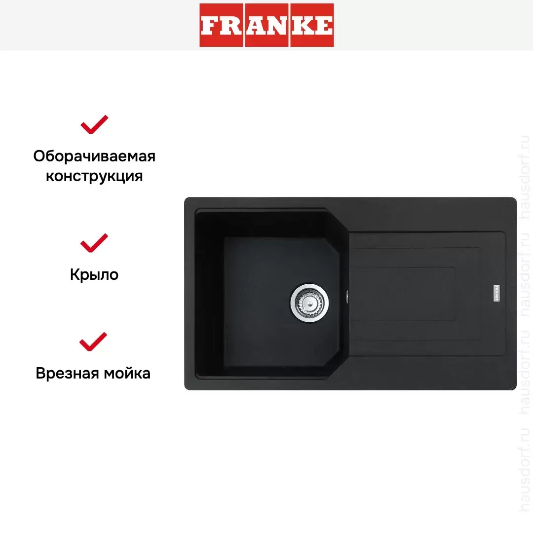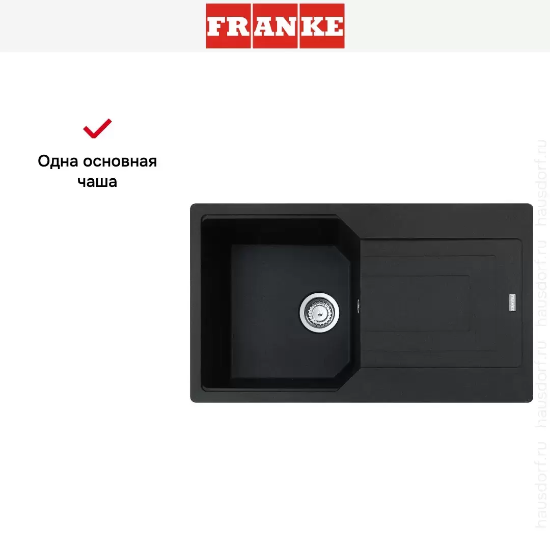 Обратите внимание на дизайнерские отличия мойки Франке, которые помогут в создании идеальной кухни в вашем доме. Она выполнена в цвете оникс. Основной материал — фрагранит, он гарантирует надежность и долгие годы службы без повреждений. Крыло, расположенное слева или справа, является дополнительным рабочим пространством, на котором можно сушить посуду, разделывать мясо и нарезать овощи.