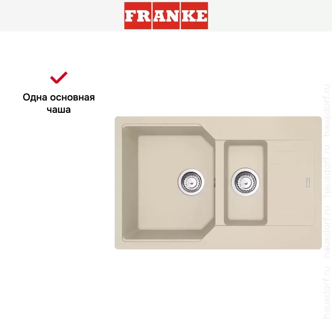 Врезная мойка Franke — отличный выбор для тех, кто хочет создать гармоничное кухонное пространство с полностью вписывающейся в него сантехникой. Преимущество такой конструкции — плотное прилегание к столешнице, так как вырез подбирается индивидуально под габариты модели. Под стыки не попадает вода, поэтому срок службы значительно увеличивается, пользоваться ей удобно и приятно. Данная модель имеет стандартную форму, поэтому подходит большинству пользователей. Устанавливается вровень со столешницей, благодаря чему не остается стыков, в которых копились бы загрязнения.