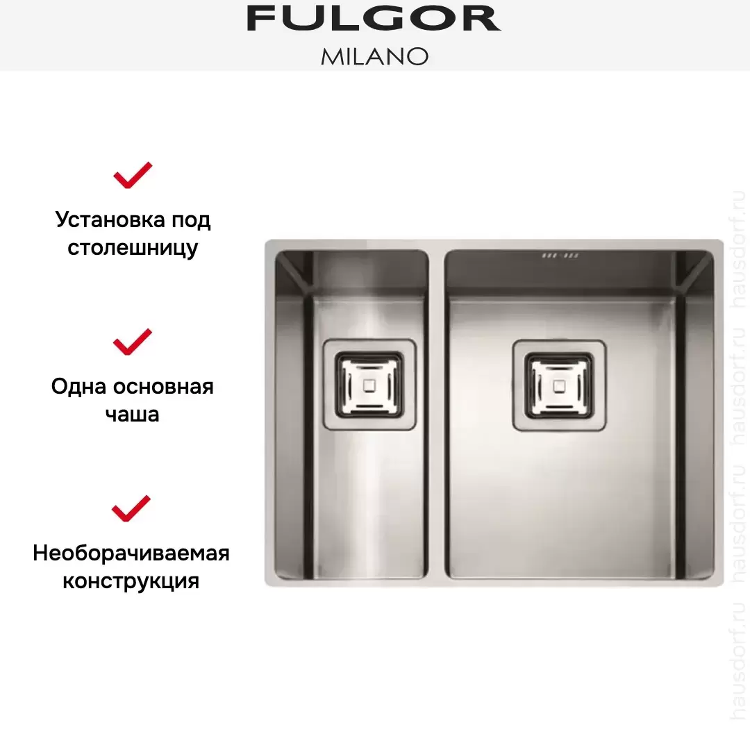 Мойка Fulgor Milano P2B 5343 QU — стильный дизайн и удобный функционал. Модель изготовлена из нержавеющей стали Plano и оснащена 2-мя разными чашами для оптимального использования внутреннего пространства. Установка производится под столешницу.