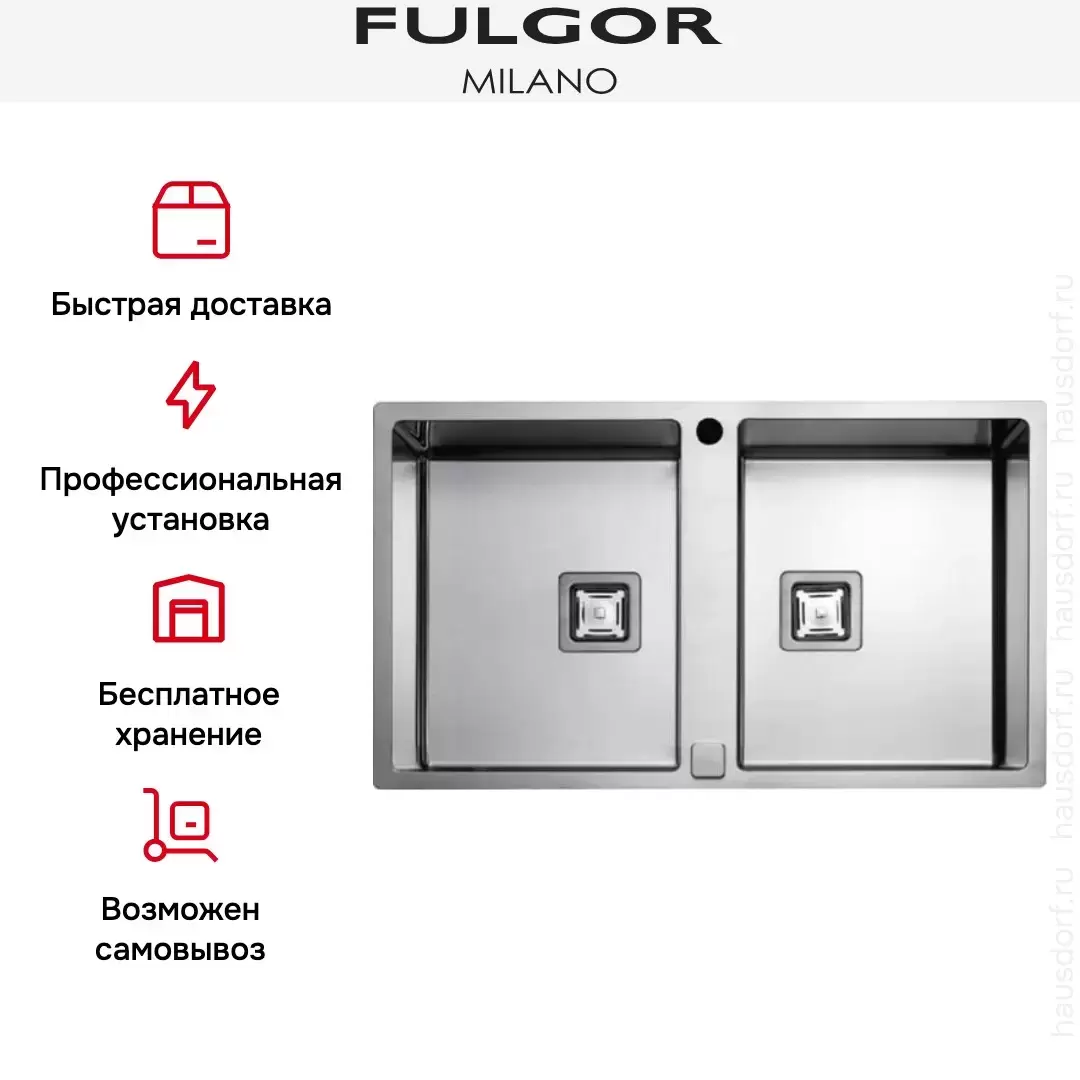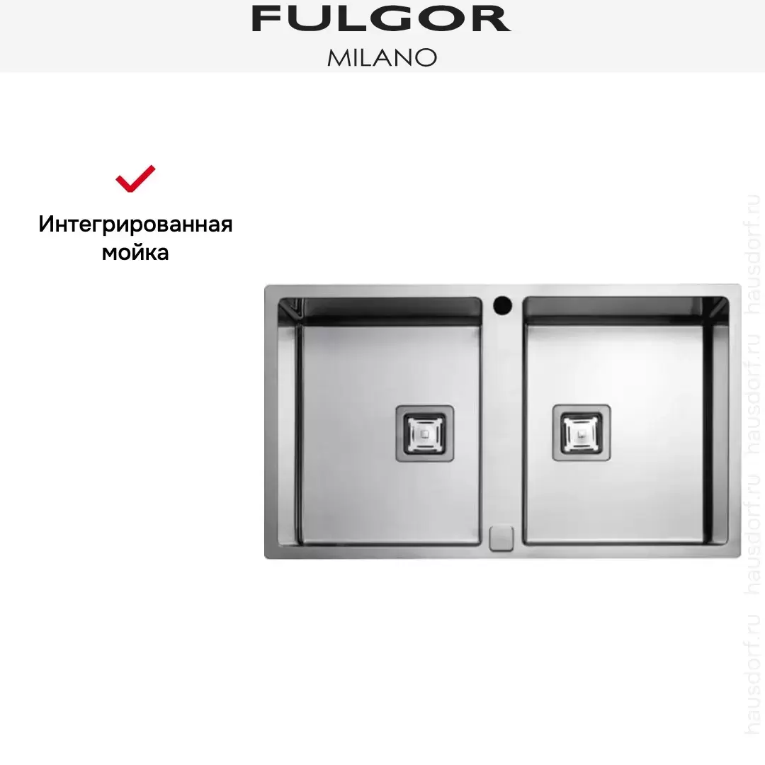 Мойка Fulgor Milano с дополнительной чашей и вырезом для сифона.