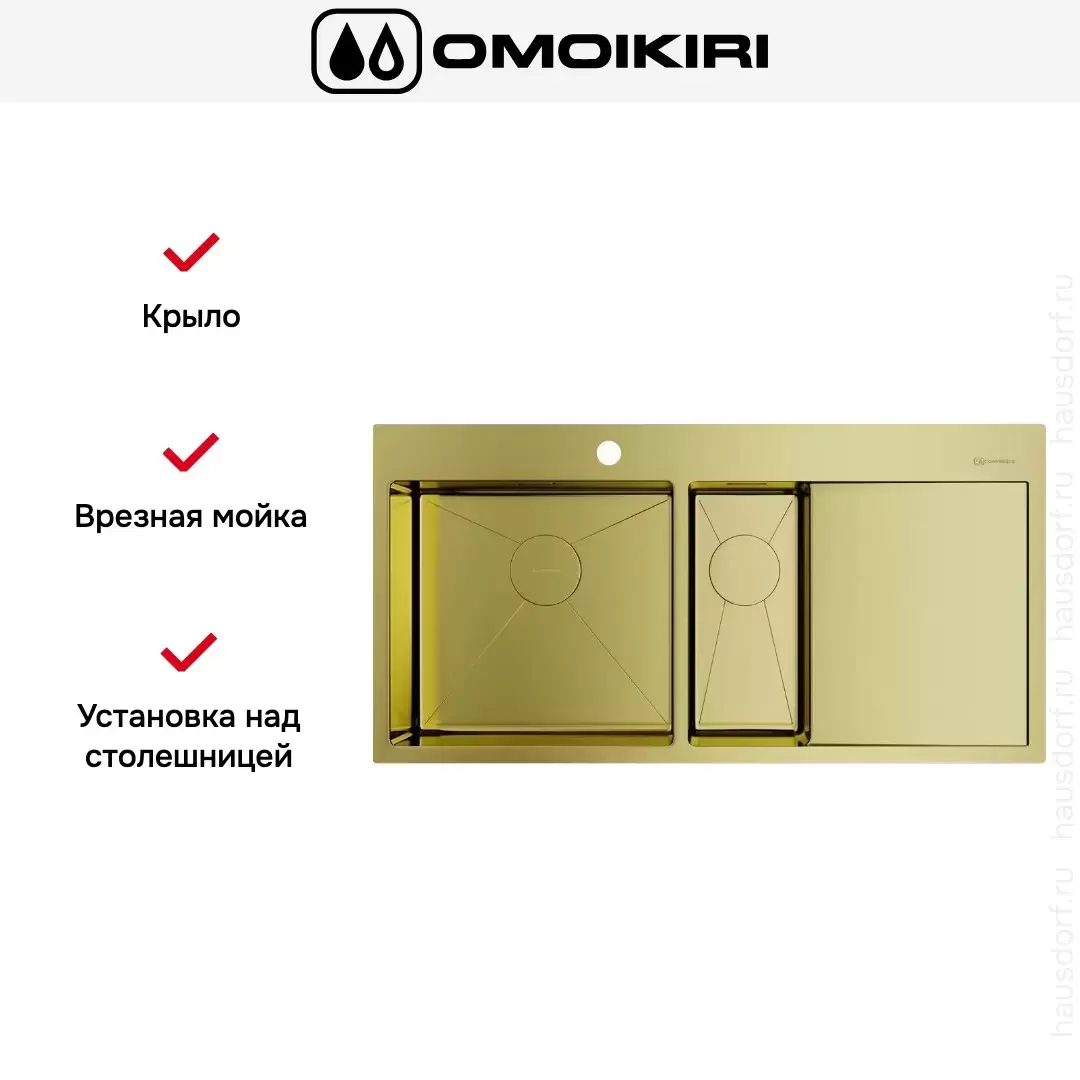 Обратите внимание на дизайнерские отличия мойки Омойкири, которые помогут в создании идеальной кухни в вашем доме. Она выполнена в цвете светлое золото. Основной материал — нержавеющая сталь, он гарантирует надежность и долгие годы службы без повреждений. Крыло, расположенное справа, является дополнительным рабочим пространством, на котором можно сушить посуду, разделывать мясо и нарезать овощи.