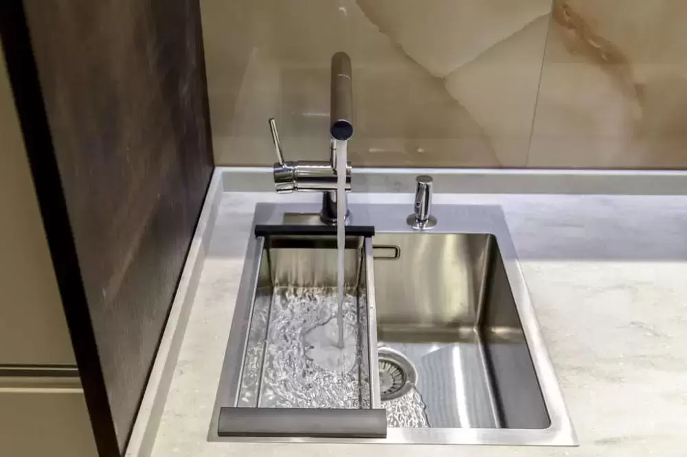 Эту модель можно установить только в одном положении — подходит для гарнитура с фиксированным местом смесителя. Для корректного размещения вам понадобится база шириной 45 см.