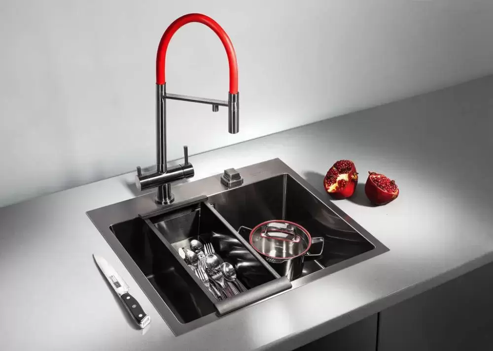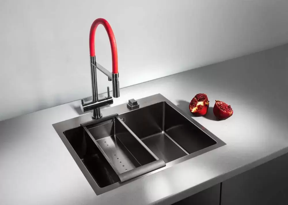 Обратите внимание на дизайнерские отличия мойки Омойкири, которые помогут в создании идеальной кухни в вашем доме. Она выполнена в цвете вороненая сталь. Основной материал — нержавеющая сталь, он гарантирует надежность и долгие годы службы без повреждений.