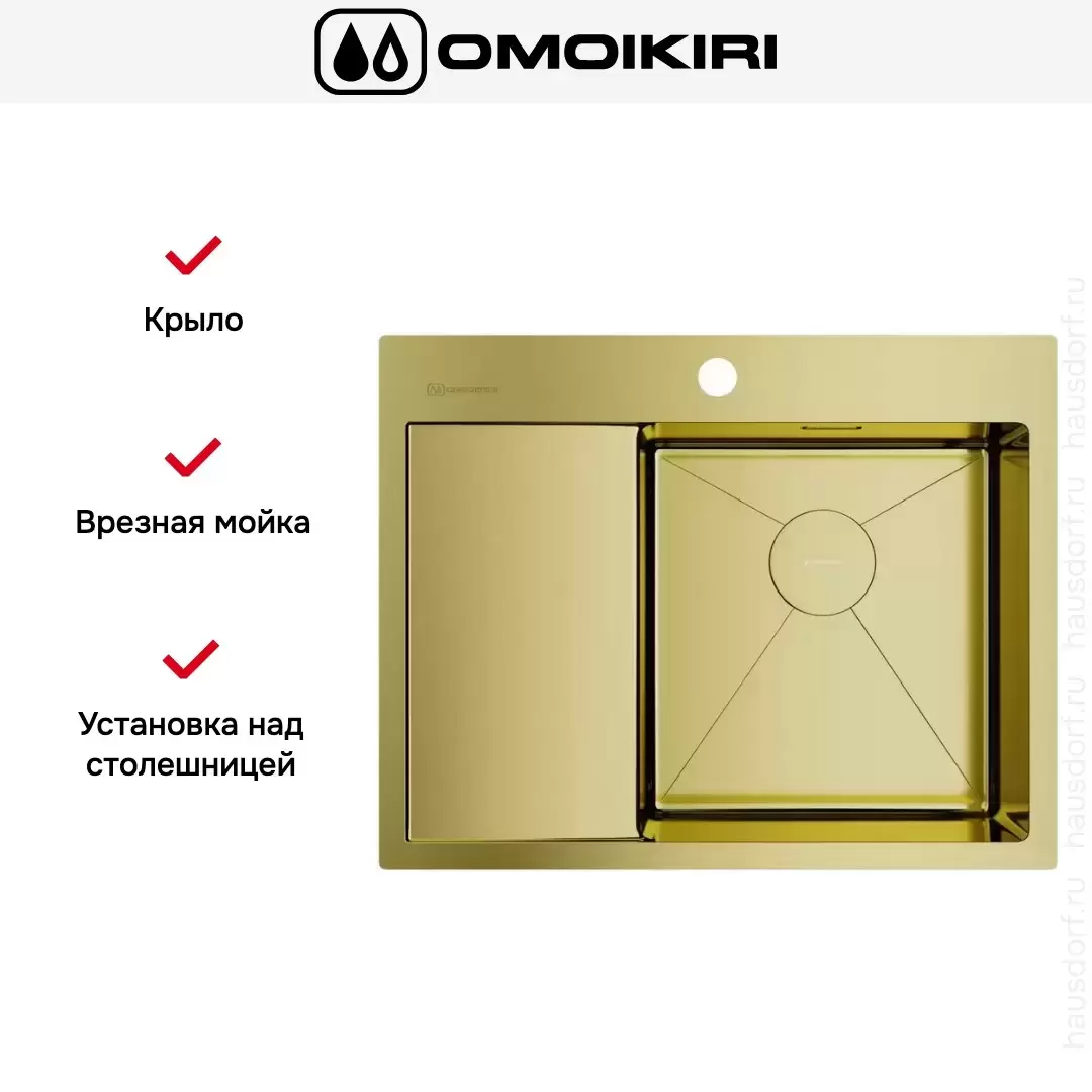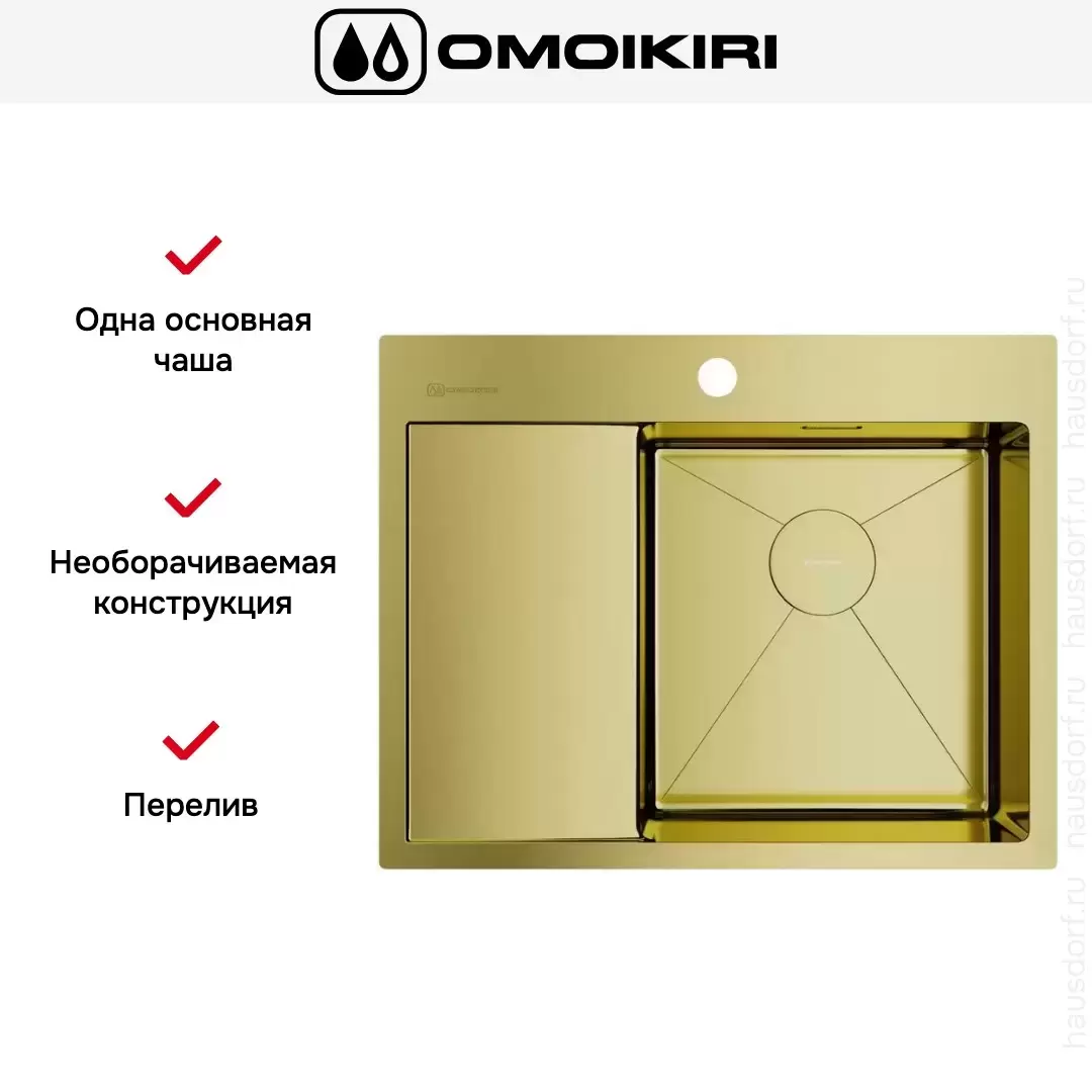 Обратите внимание на дизайнерские отличия мойки Омойкири, которые помогут в создании идеальной кухни в вашем доме. Она выполнена в цвете светлое золото. Основной материал — нержавеющая сталь, он гарантирует надежность и долгие годы службы без повреждений. Крыло, расположенное слева, является дополнительным рабочим пространством, на котором можно сушить посуду, разделывать мясо и нарезать овощи.