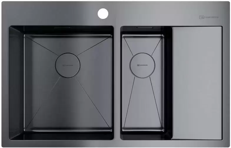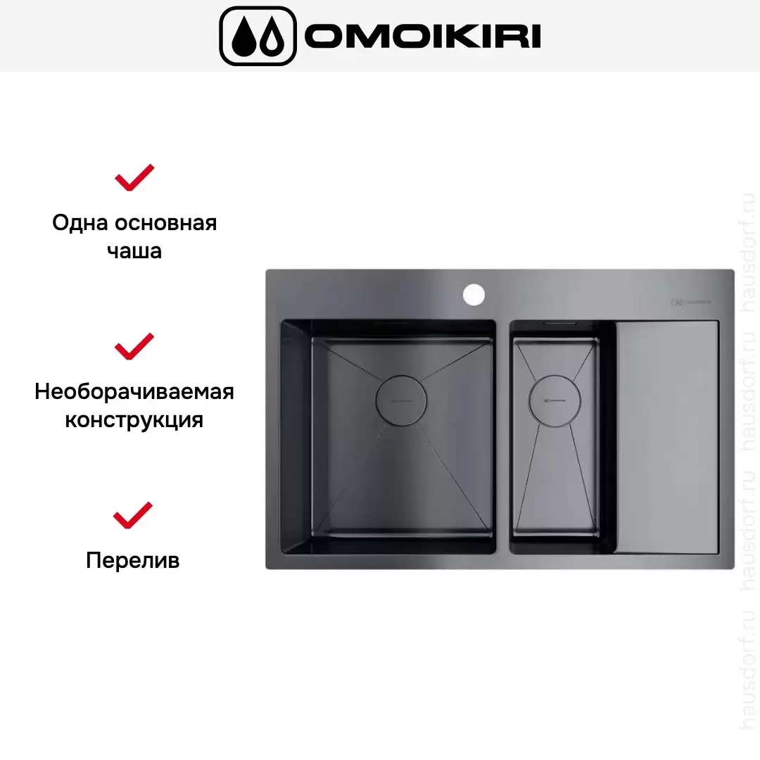 Обратите внимание на дизайнерские отличия мойки Омойкири, которые помогут в создании идеальной кухни в вашем доме. Она выполнена в цвете вороненая сталь. Основной материал — нержавеющая сталь, он гарантирует надежность и долгие годы службы без повреждений. Крыло, расположенное справа, является дополнительным рабочим пространством, на котором можно сушить посуду, разделывать мясо и нарезать овощи.