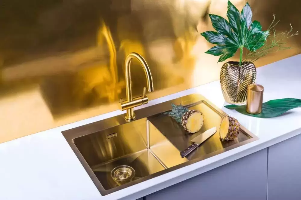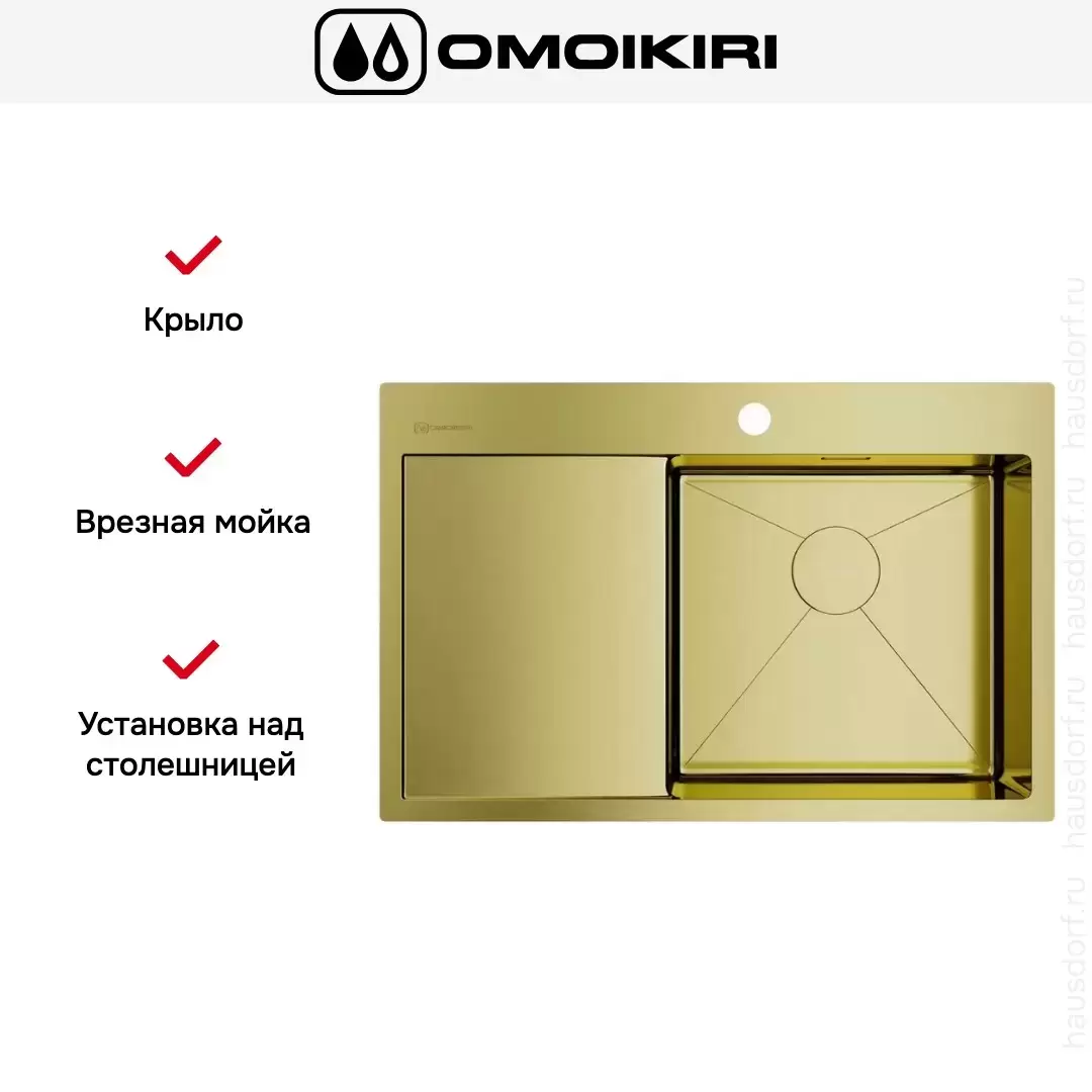 Обратите внимание на дизайнерские отличия мойки Омойкири, которые помогут в создании идеальной кухни в вашем доме. Она выполнена в цвете светлое золото. Основной материал — нержавеющая сталь, он гарантирует надежность и долгие годы службы без повреждений. Крыло, расположенное слева, является дополнительным рабочим пространством, на котором можно сушить посуду, разделывать мясо и нарезать овощи.