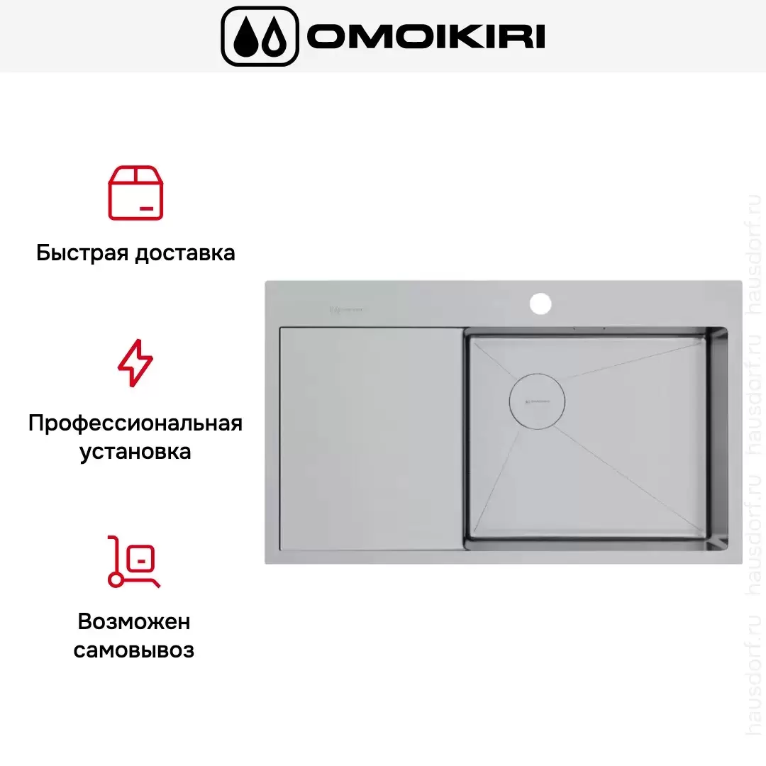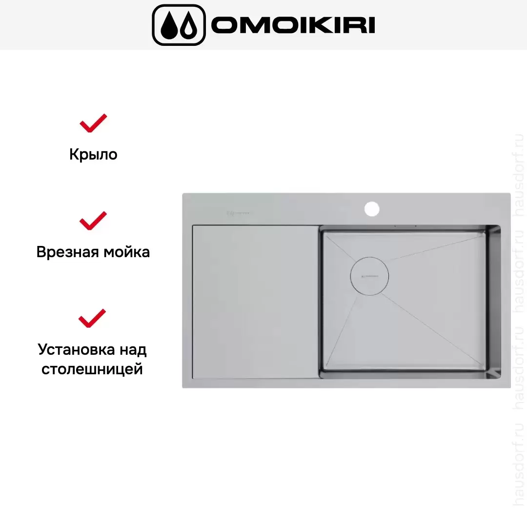 Врезная мойка Omoikiri — отличный выбор для тех, кто хочет создать гармоничное кухонное пространство с полностью вписывающейся в него сантехникой. Преимущество такой конструкции — плотное прилегание к столешнице, так как вырез подбирается индивидуально под габариты модели. Под стыки не попадает вода, поэтому срок службы значительно увеличивается, пользоваться ей удобно и приятно. Данная модель имеет стандартную форму, поэтому подходит большинству пользователей. Устанавливается над столешницей: это самый простой способ монтажа, зачастую с ним можно справиться даже без специалистов, главное — правильно рассчитать размеры ниши.