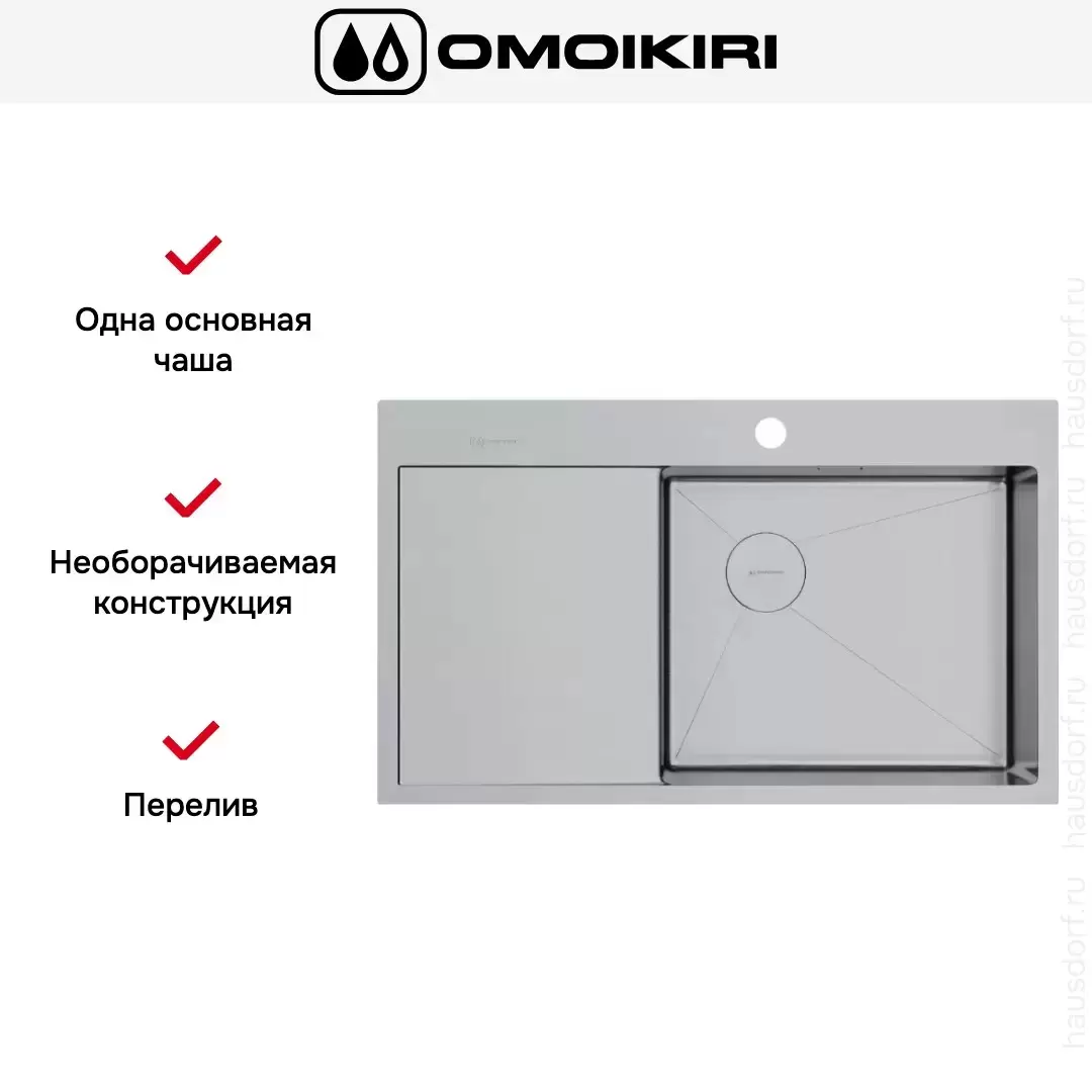 Обратите внимание на дизайнерские отличия мойки Омойкири, которые помогут в создании идеальной кухни в вашем доме. Она выполнена в цвете нержавеющая сталь. Основной материал — нержавеющая сталь, он гарантирует надежность и долгие годы службы без повреждений. Крыло, расположенное слева, является дополнительным рабочим пространством, на котором можно сушить посуду, разделывать мясо и нарезать овощи.