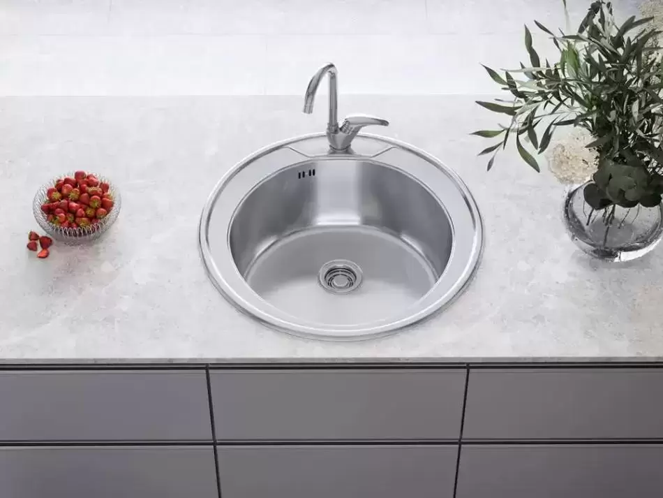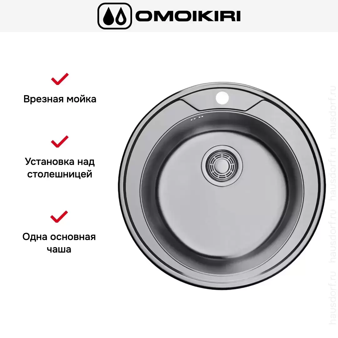 Врезная мойка Omoikiri — отличный выбор для тех, кто хочет создать гармоничное кухонное пространство с полностью вписывающейся в него сантехникой. Преимущество такой конструкции — плотное прилегание к столешнице, так как вырез подбирается индивидуально под габариты модели. Под стыки не попадает вода, поэтому срок службы значительно увеличивается, пользоваться ей удобно и приятно. Данная модель имеет скругленный контур, поэтому выбор тумбочки для нее потребует дополнительного внимания. Устанавливается над столешницей: это самый простой способ монтажа, зачастую с ним можно справиться даже без специалистов, главное — правильно рассчитать размеры ниши.