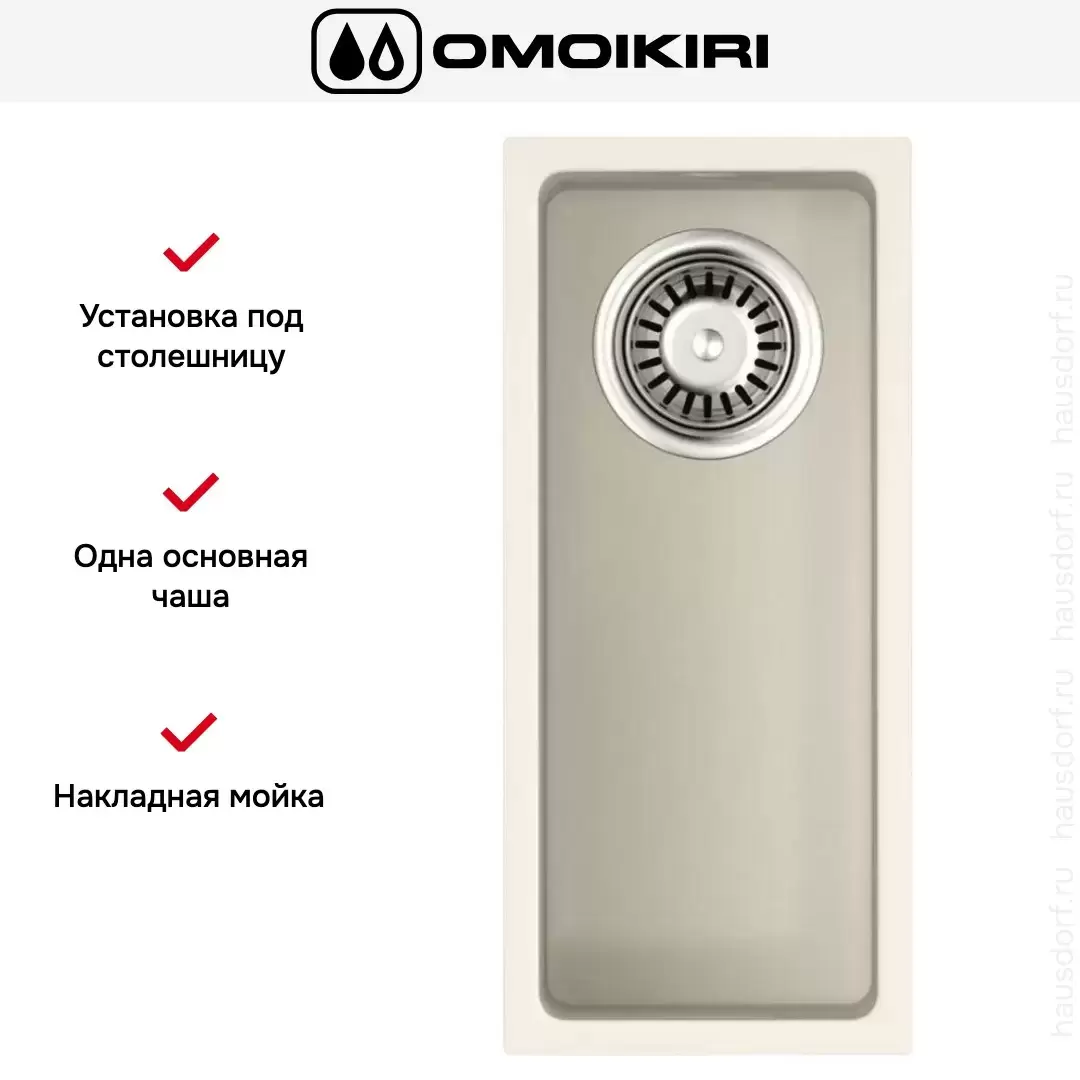 Накладная мойка Omoikiri — отличный выбор для тех, кто хочет создать гармоничное пространство с удобной сантехникой. простой в установке. Преимущество такой конструкции: легко подобрать практически к любой кухне и не придется демонтировать вместе с тумбой при ремонте или перестановке остальной мебели. Данная модель имеет стандартную форму, поэтому подходит большинству пользователей. Устанавливается под столешницу, благодаря чему не остается стыков, в которых копились бы загрязнения, а также увеличивается рабочая глубина.