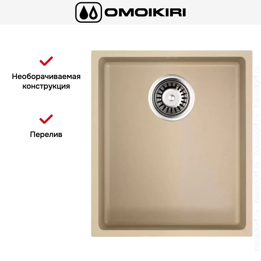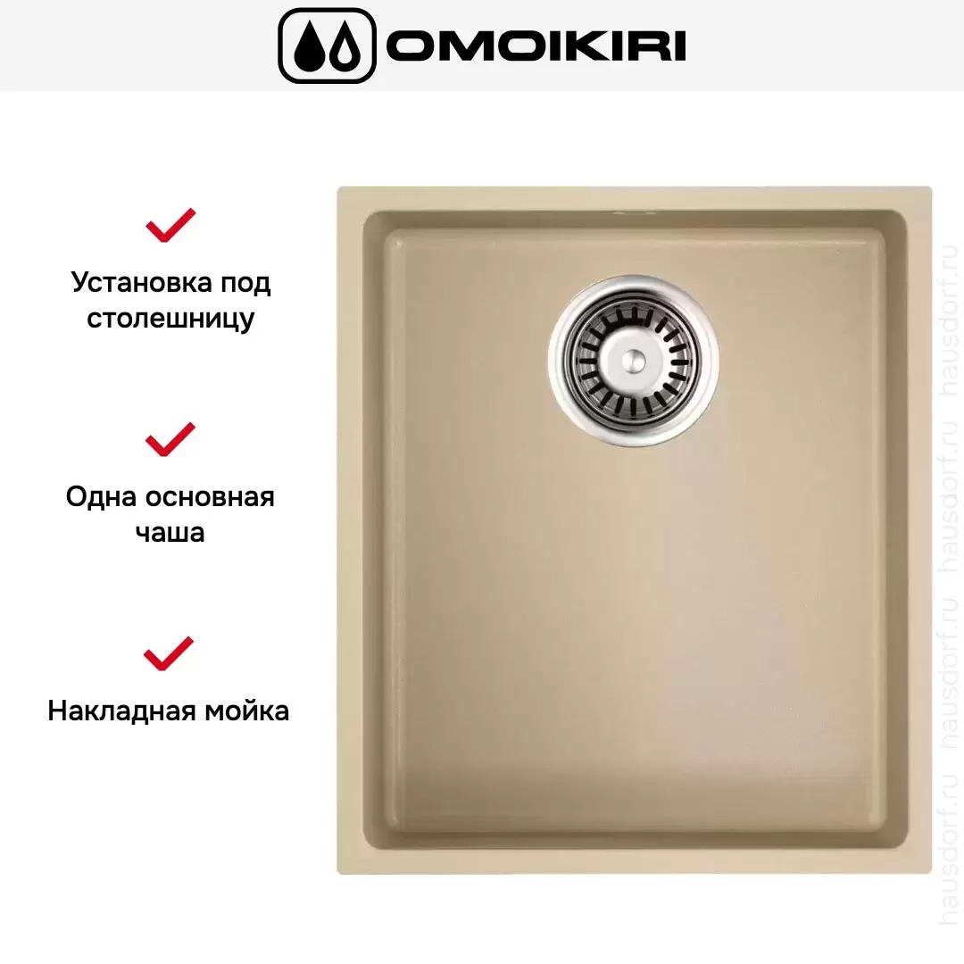 Накладная мойка Omoikiri — отличный выбор для тех, кто хочет создать гармоничное пространство с удобной сантехникой. простой в установке. Преимущество такой конструкции: легко подобрать практически к любой кухне и не придется демонтировать вместе с тумбой при ремонте или перестановке остальной мебели. Данная модель имеет стандартную форму, поэтому подходит большинству пользователей. Устанавливается под столешницу, благодаря чему не остается стыков, в которых копились бы загрязнения, а также увеличивается рабочая глубина.
