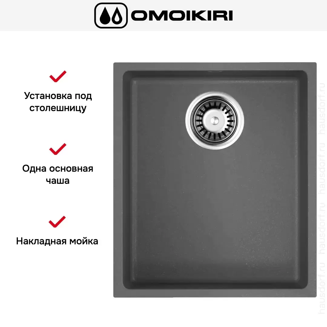 Накладная мойка Omoikiri — отличный выбор для тех, кто хочет создать гармоничное пространство с удобной сантехникой. простой в установке. Преимущество такой конструкции: легко подобрать практически к любой кухне и не придется демонтировать вместе с тумбой при ремонте или перестановке остальной мебели. Данная модель имеет стандартную форму, поэтому подходит большинству пользователей. Устанавливается под столешницу, благодаря чему не остается стыков, в которых копились бы загрязнения, а также увеличивается рабочая глубина.