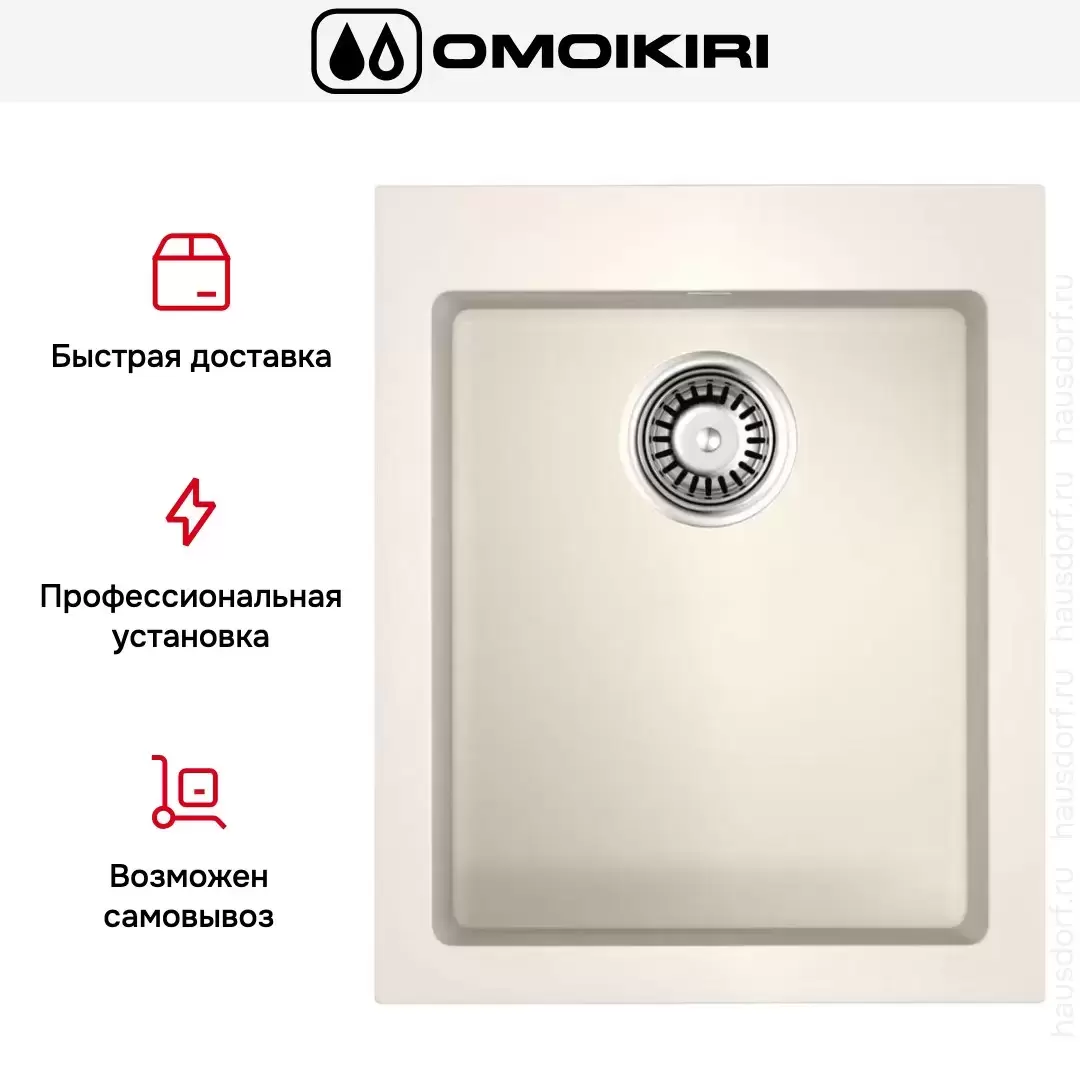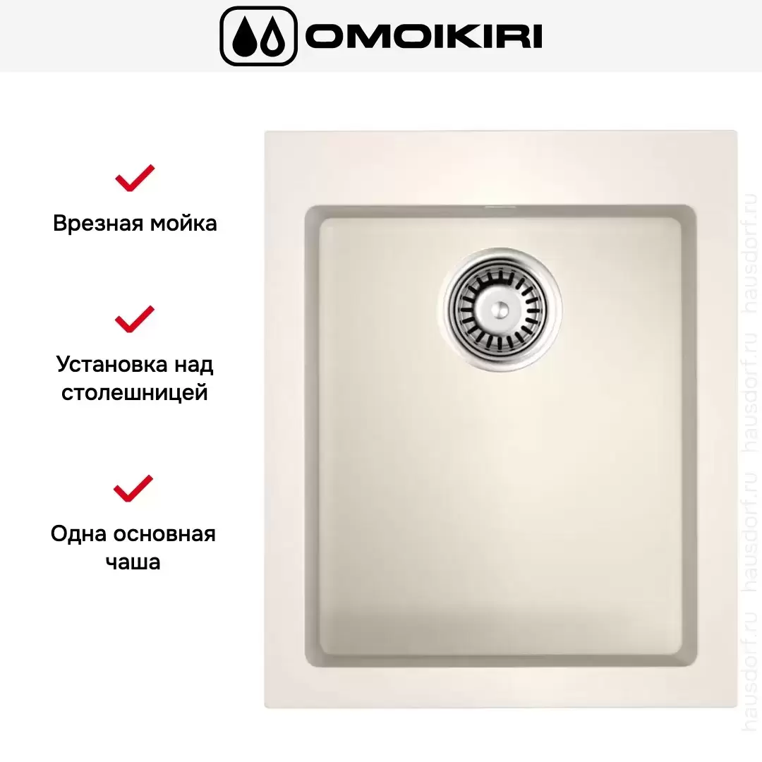 Врезная мойка Omoikiri — отличный выбор для тех, кто хочет создать гармоничное кухонное пространство с полностью вписывающейся в него сантехникой. Преимущество такой конструкции — плотное прилегание к столешнице, так как вырез подбирается индивидуально под габариты модели. Под стыки не попадает вода, поэтому срок службы значительно увеличивается, пользоваться ей удобно и приятно. Данная модель имеет стандартную форму, поэтому подходит большинству пользователей. Устанавливается над столешницей: это самый простой способ монтажа, зачастую с ним можно справиться даже без специалистов, главное — правильно рассчитать размеры ниши.