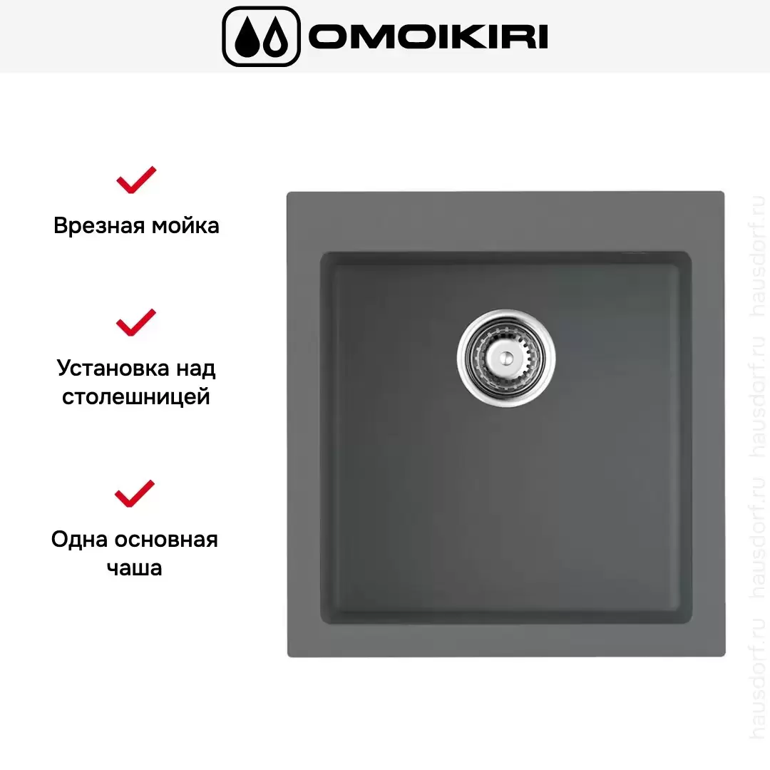 Врезная мойка Omoikiri — отличный выбор для тех, кто хочет создать гармоничное кухонное пространство с полностью вписывающейся в него сантехникой. Преимущество такой конструкции — плотное прилегание к столешнице, так как вырез подбирается индивидуально под габариты модели. Под стыки не попадает вода, поэтому срок службы значительно увеличивается, пользоваться ей удобно и приятно. Данная модель имеет стандартную форму, поэтому подходит большинству пользователей. Устанавливается над столешницей: это самый простой способ монтажа, зачастую с ним можно справиться даже без специалистов, главное — правильно рассчитать размеры ниши.