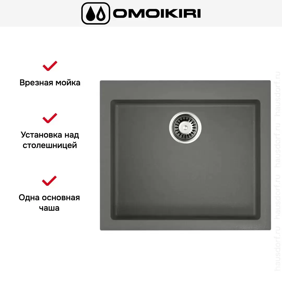 Врезная мойка Omoikiri — отличный выбор для тех, кто хочет создать гармоничное кухонное пространство с полностью вписывающейся в него сантехникой. Преимущество такой конструкции — плотное прилегание к столешнице, так как вырез подбирается индивидуально под габариты модели. Под стыки не попадает вода, поэтому срок службы значительно увеличивается, пользоваться ей удобно и приятно. Данная модель имеет стандартную форму, поэтому подходит большинству пользователей. Устанавливается над столешницей: это самый простой способ монтажа, зачастую с ним можно справиться даже без специалистов, главное — правильно рассчитать размеры ниши.