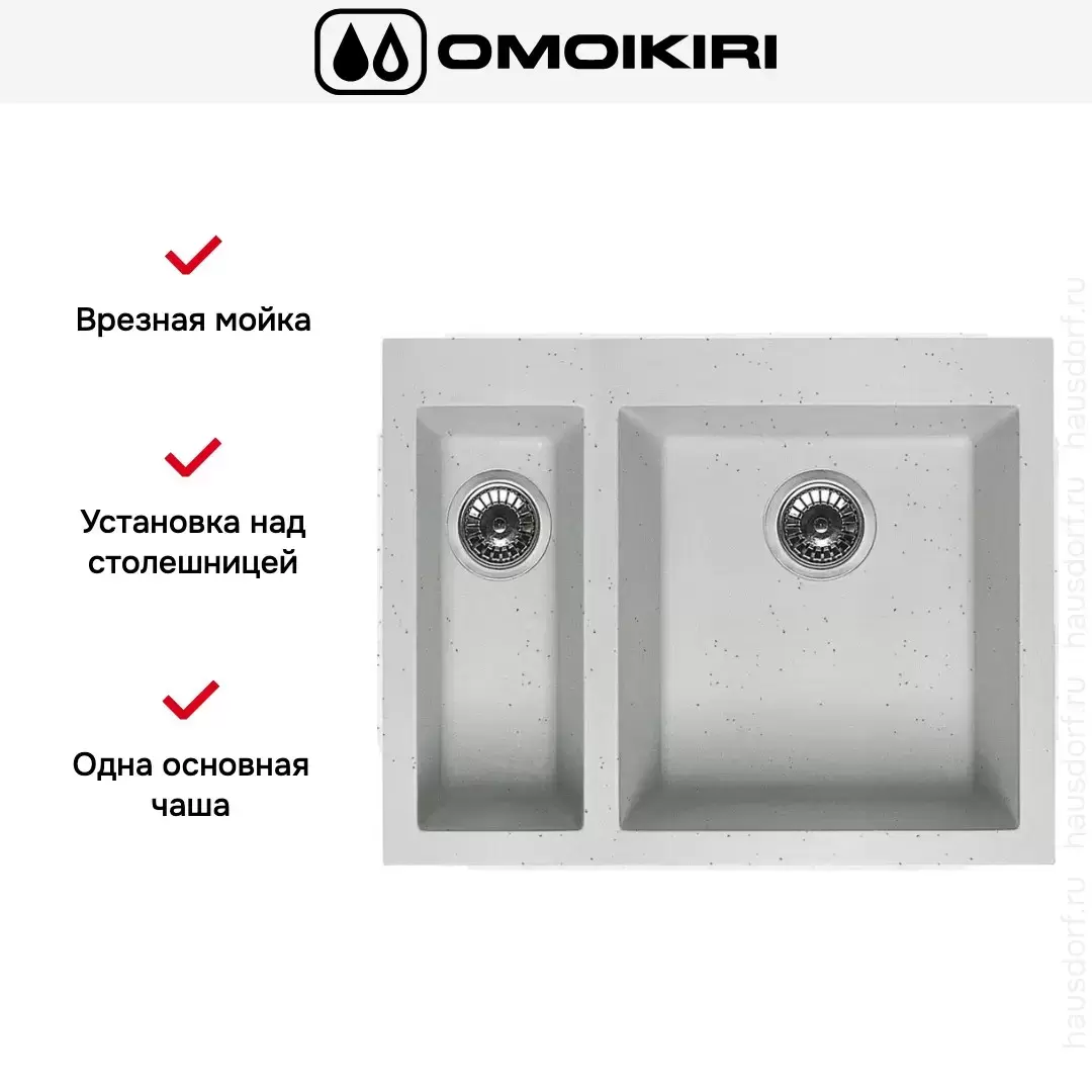 Врезная мойка Omoikiri — отличный выбор для тех, кто хочет создать гармоничное кухонное пространство с полностью вписывающейся в него сантехникой. Преимущество такой конструкции — плотное прилегание к столешнице, так как вырез подбирается индивидуально под габариты модели. Под стыки не попадает вода, поэтому срок службы значительно увеличивается, пользоваться ей удобно и приятно. Данная модель имеет стандартную форму, поэтому подходит большинству пользователей. Устанавливается над столешницей: это самый простой способ монтажа, зачастую с ним можно справиться даже без специалистов, главное — правильно рассчитать размеры ниши.