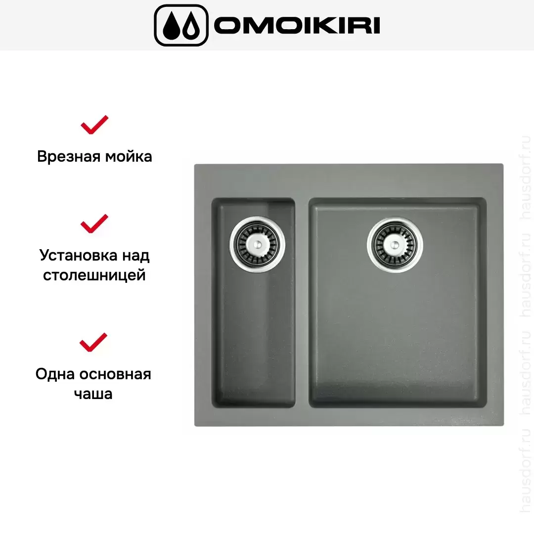 Врезная мойка Omoikiri — отличный выбор для тех, кто хочет создать гармоничное кухонное пространство с полностью вписывающейся в него сантехникой. Преимущество такой конструкции — плотное прилегание к столешнице, так как вырез подбирается индивидуально под габариты модели. Под стыки не попадает вода, поэтому срок службы значительно увеличивается, пользоваться ей удобно и приятно. Данная модель имеет стандартную форму, поэтому подходит большинству пользователей. Устанавливается над столешницей: это самый простой способ монтажа, зачастую с ним можно справиться даже без специалистов, главное — правильно рассчитать размеры ниши.