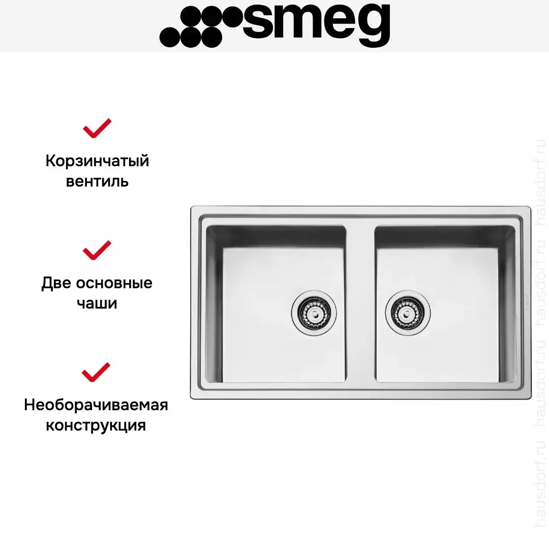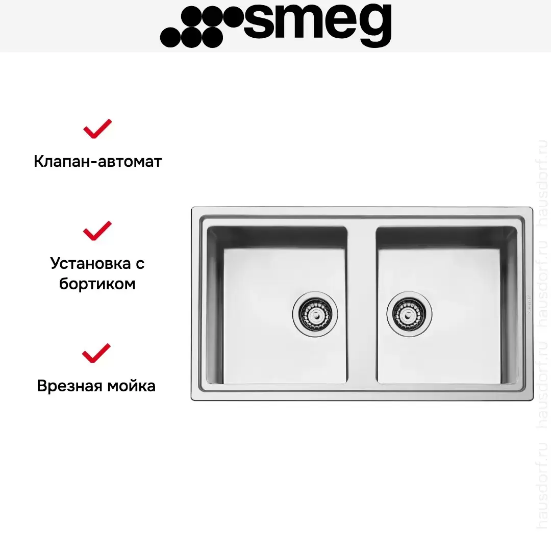 Врезная мойка Smeg — отличный выбор для тех, кто хочет создать гармоничное кухонное пространство с полностью вписывающейся в него сантехникой. Преимущество такой конструкции — плотное прилегание к столешнице, так как вырез подбирается индивидуально под габариты модели. Под стыки не попадает вода, поэтому срок службы значительно увеличивается, пользоваться ей удобно и приятно. Данная модель имеет стандартную форму, поэтому подходит большинству пользователей.