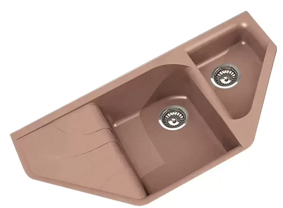 Представленная модель имеет две чаши, а также дополнительное крыло для сушки посуды и столовых приборов, отличается нестандартной ромбовидной формой и устанавливается врезным методом. Основная чаша вмещает в себя большое количество посуды, а дополнительная чаша предназначена для мытья овощей, фруктов и мелких столовых приборов.