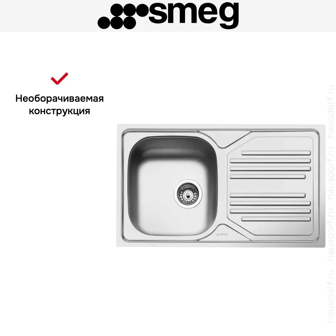 Мойка Smeg LYP861D прямоугольной формы со скругленными углами изготовлена из нержавеющей стали толщиной 0,6 мм, устойчивой к колебаниям температуры, не подверженной коррозии и очень удобной в уходе. Модель оснащена большим крылом, которое располагается справа. Глубина чаши составляет 14 см.