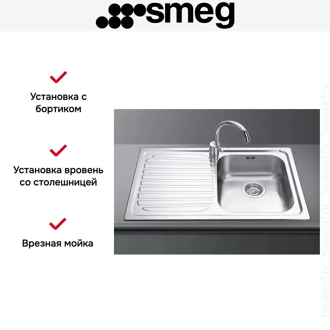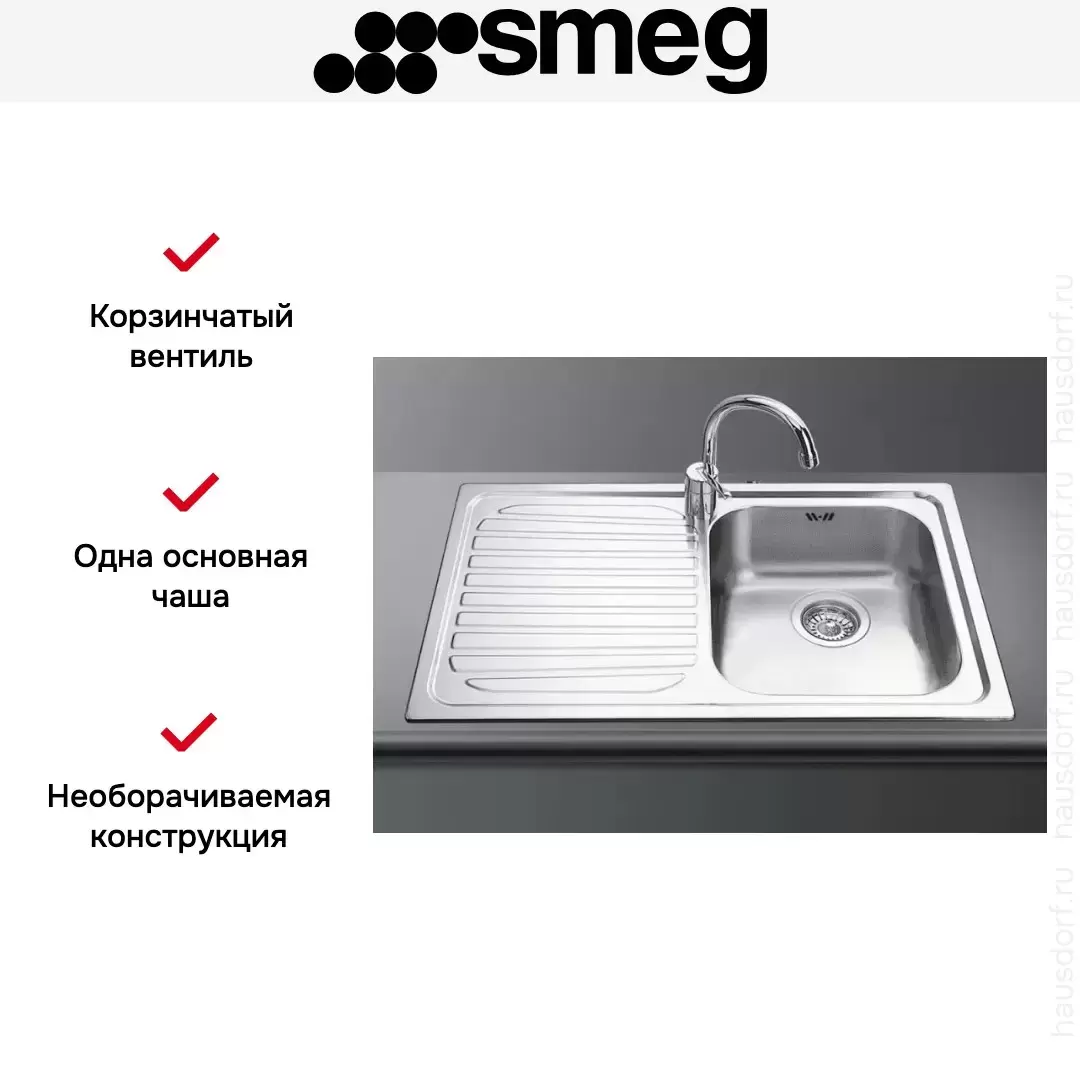 Модель мойки SP791S-2 от производителя Smeg выполнена из нержавеющей стали — материала, устойчивого к коррозии и воздействию химических веществ. Модель имеет одну чашу и дополнительное крыло, благодаря которому рабочее пространство увеличивается, и мытье посуды и продуктов становится более комфортным и простым делом.
