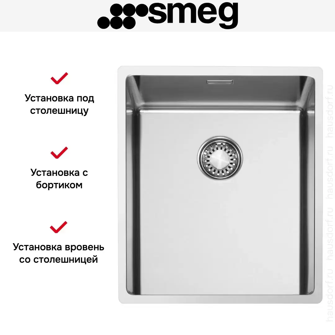 Мойка Smeg VR12S34 — оригинальная модель прямоугольной формы со скругленными углами. Благодаря ширине всего 38 см ее можно установить даже на малогабаритной кухне. Мойка подойдет для монтажа под столешницу либо вровень с ней. Материал изготовления — высококачественная нержавеющая сталь толщиной 1 мм с матовой текстурой. При небольшой ширине чаша достаточно глубокая — ее глубина составляет 20 см. Мойка Смег VR12S34 оснащается корзинчатым вентилем для защиты от попадания в канализацию посторонних предметов.