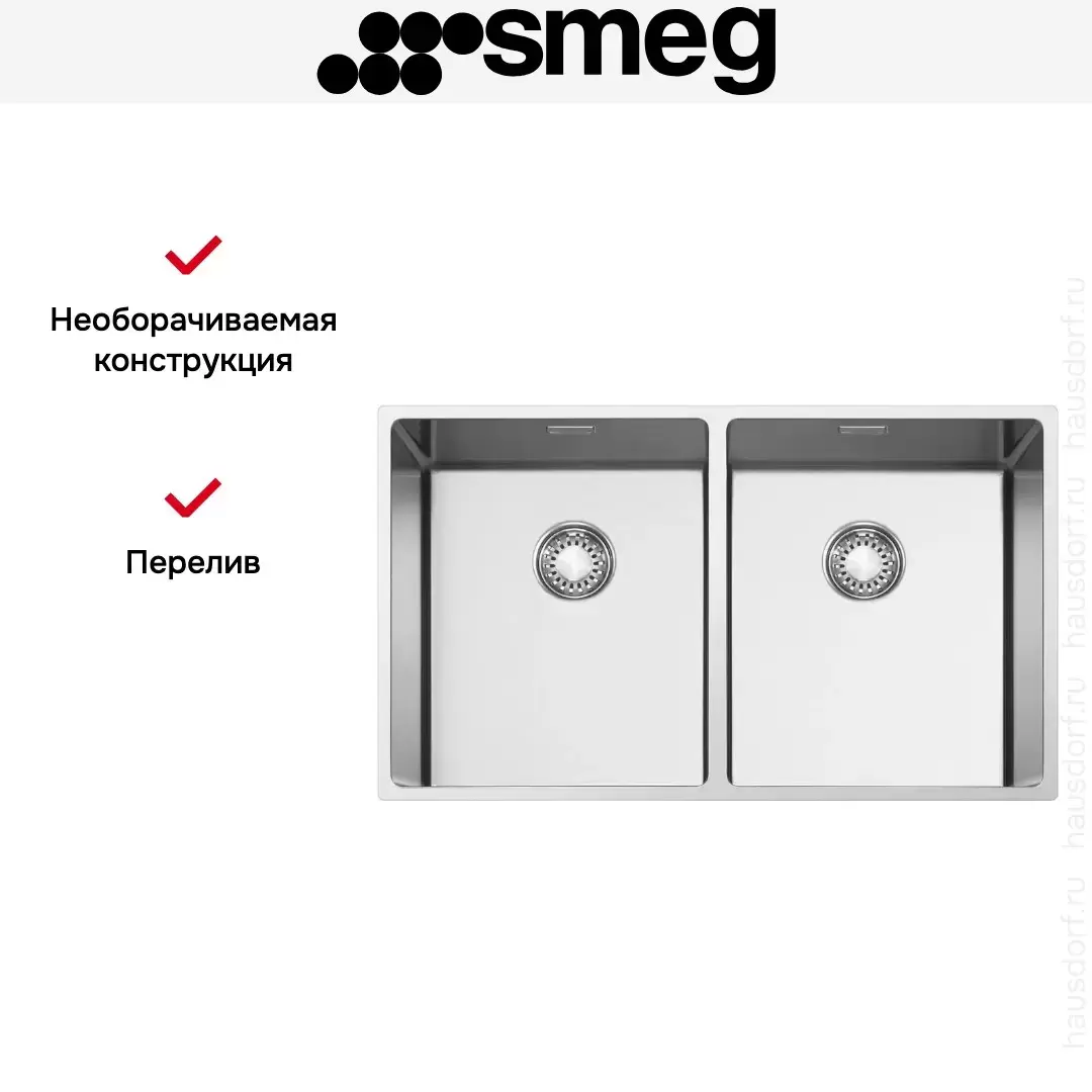 Врезная мойка Smeg — отличный выбор для тех, кто хочет создать гармоничное кухонное пространство с полностью вписывающейся в него сантехникой. Преимущество такой конструкции — плотное прилегание к столешнице, так как вырез подбирается индивидуально под габариты модели. Под стыки не попадает вода, поэтому срок службы значительно увеличивается, пользоваться ей удобно и приятно. Данная модель имеет стандартную форму, поэтому подходит большинству пользователей. Устанавливается вровень со столешницей, благодаря чему не остается стыков, в которых копились бы загрязнения. Устанавливается под столешницу, благодаря чему не остается стыков, в которых копились бы загрязнения, а также увеличивается рабочая глубина.