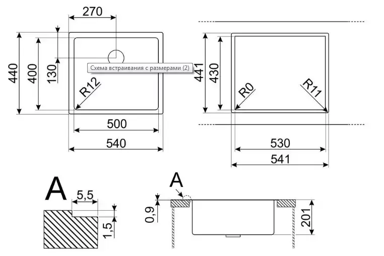 | Тип мойки | Врезная | |