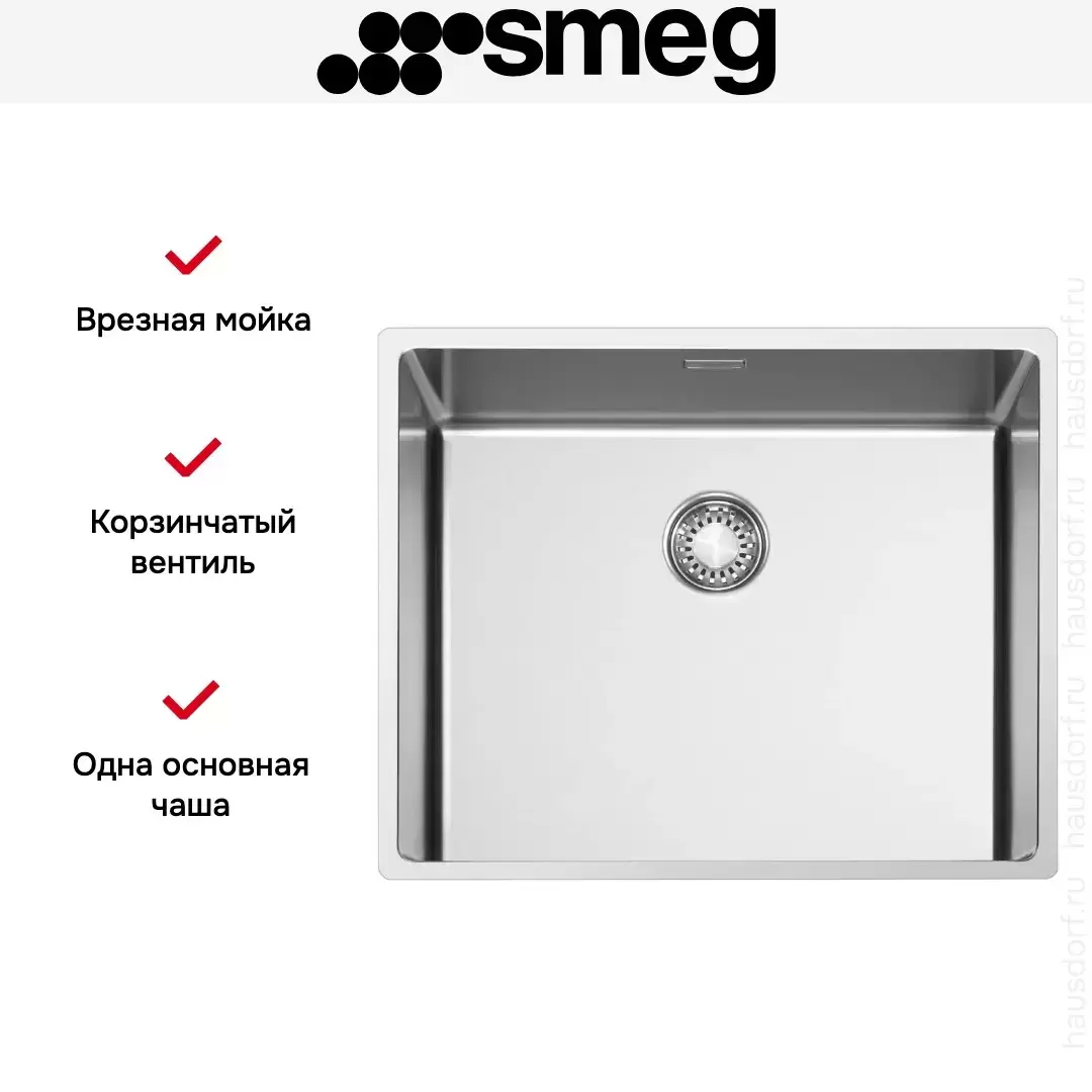 Мойка Smeg VR12S50 прямоугольной формы шириной 54 см может устанавливаться двумя способами: вровень со столешницей либо под столешницу. Она изготовлена из нержавеющей стали AISI304, способной выдерживать высокие температуры и не тускнеющей при воздействии самых агрессивных моющих средств. Глубина чаши составляет 20 см — в ней поместится достаточно большая посуда и продукты. Фиксирующие зажимы для легкого монтажа при установке мойки Смег VR12S50 под столешницу входят в комплект.