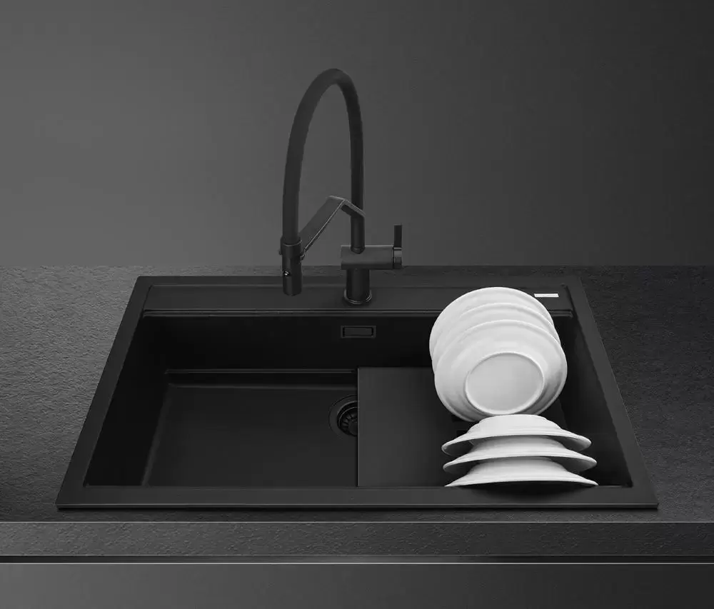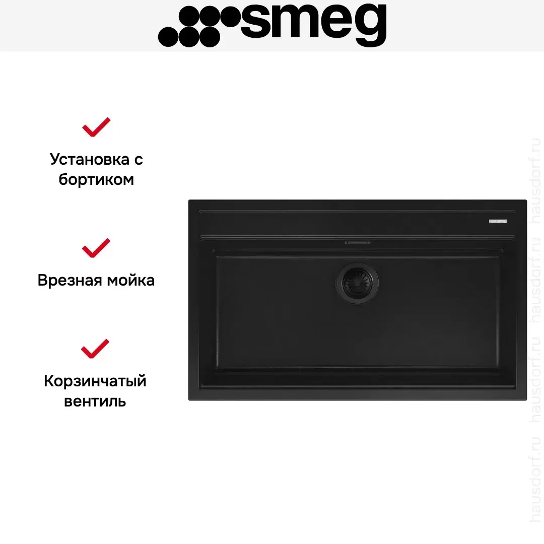 Обратите внимание на дизайнерские отличия мойки Смег, которые помогут в создании идеальной кухни в вашем доме. Она выполнена в цвете черный. Основной материал — гранит, он гарантирует надежность и долгие годы службы без повреждений.
