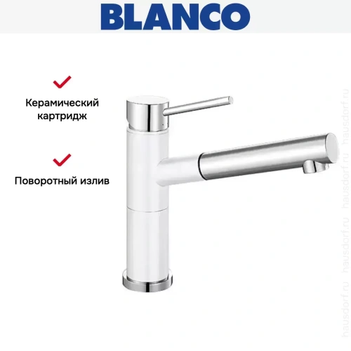 Смеситель Бланко — отличный выбор для кухни и ванной комнаты. Простая конструкция позволяет изменять напор и температуру воды с помощью одного рычага: двигайте его вправо-влево или вверх-вниз для достижения нужного результата. Эта модель подойдет современному интерьеру, будет незаменима, если в вашем распоряжении небольшое пространство для сантехники. Благодаря запорному механизму в виде керамических пластин такой смеситель прослужит много лет, так как в нем отсутствуют быстро стирающиеся прокладки; также на клапане практически не образуется накипь. При повороте ручки диски внутри смещаются относительно друг друга — открывают или блокируют воду.